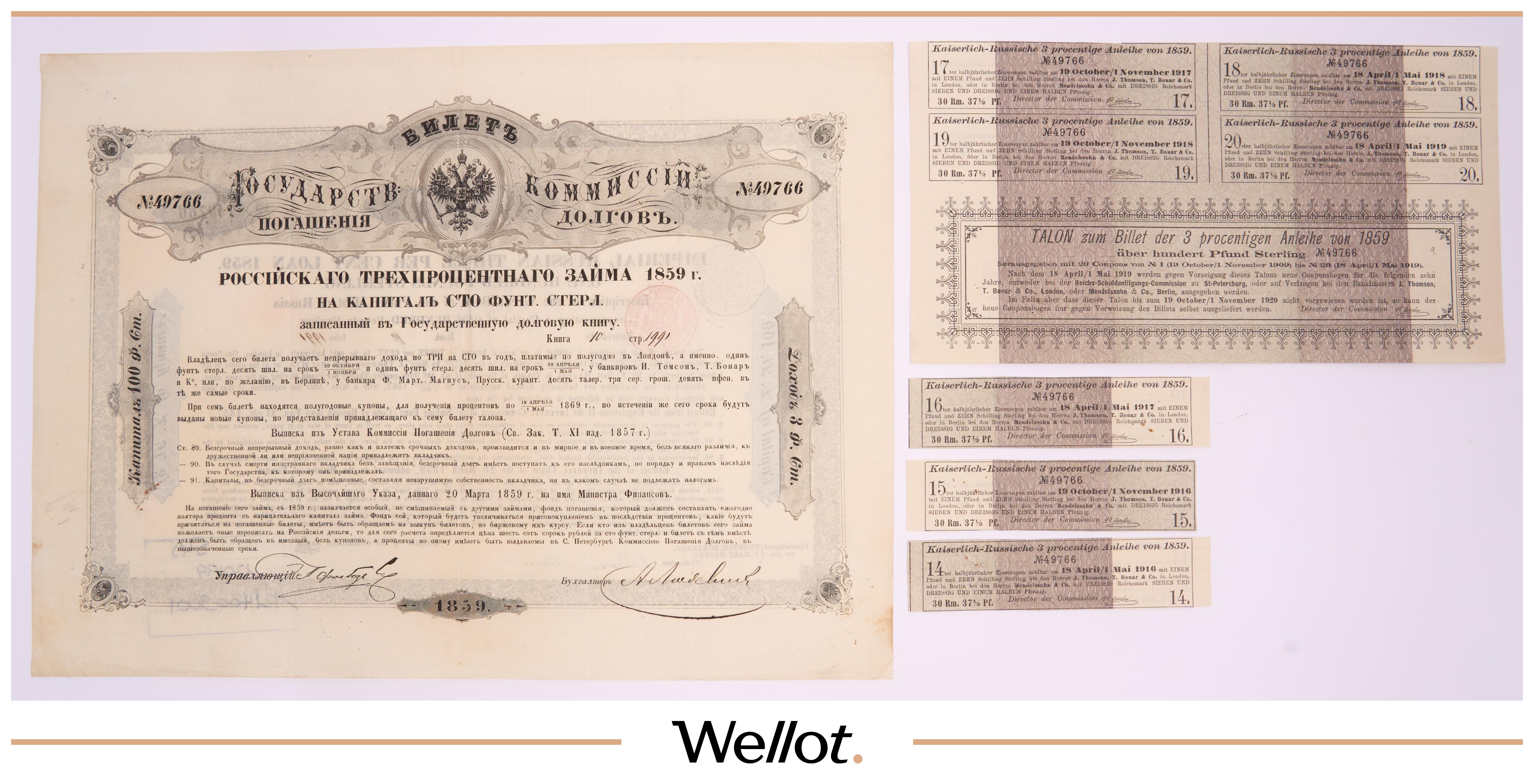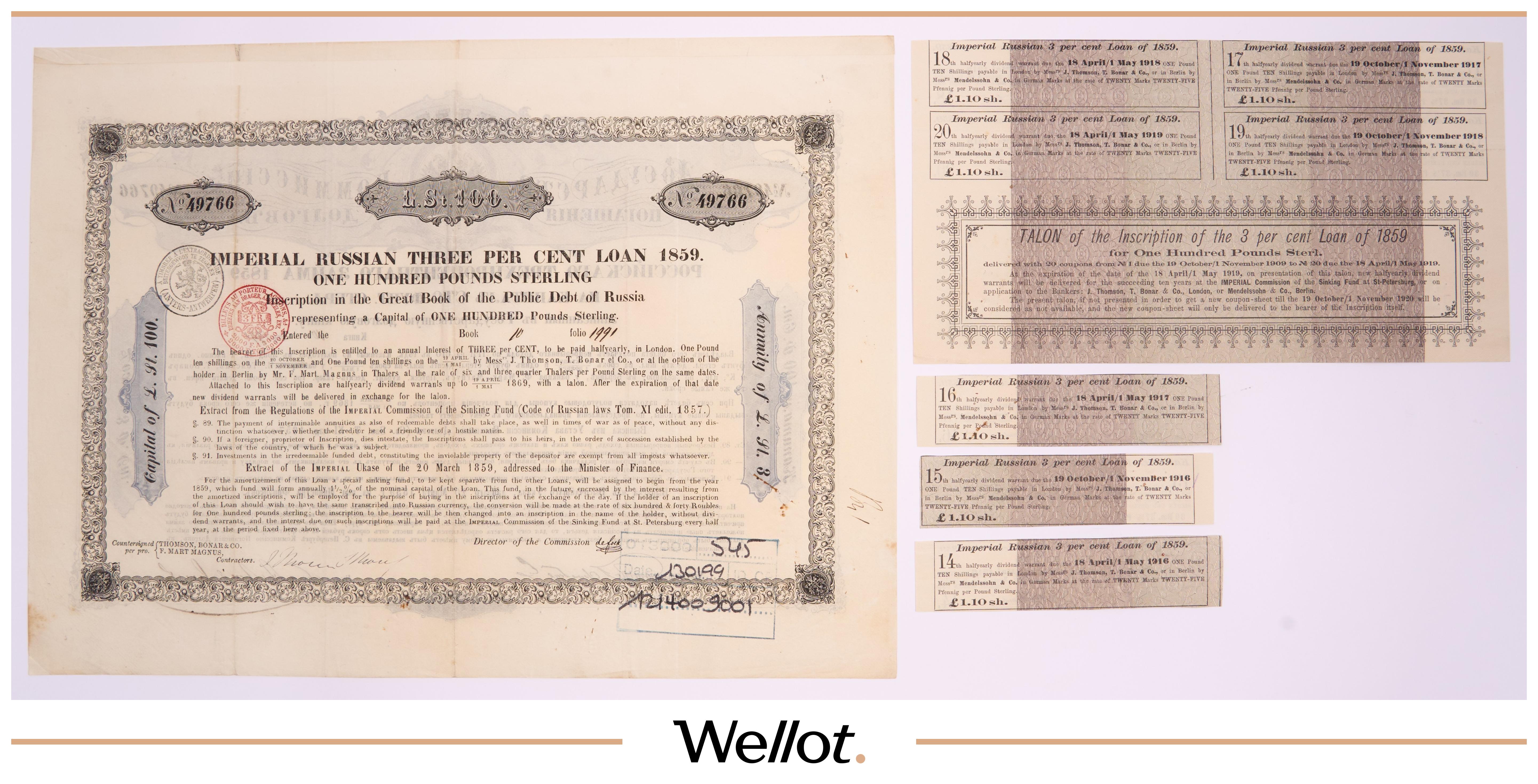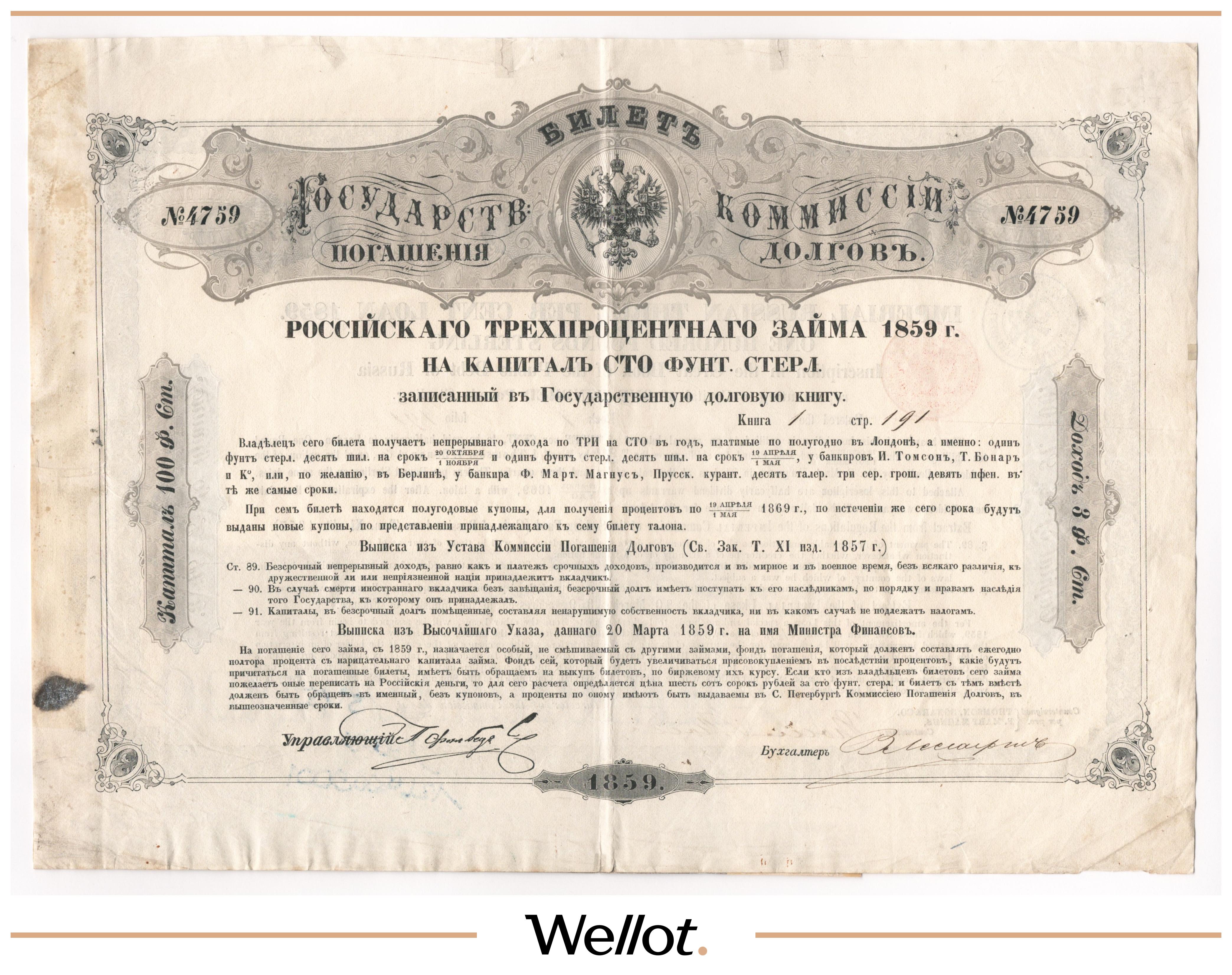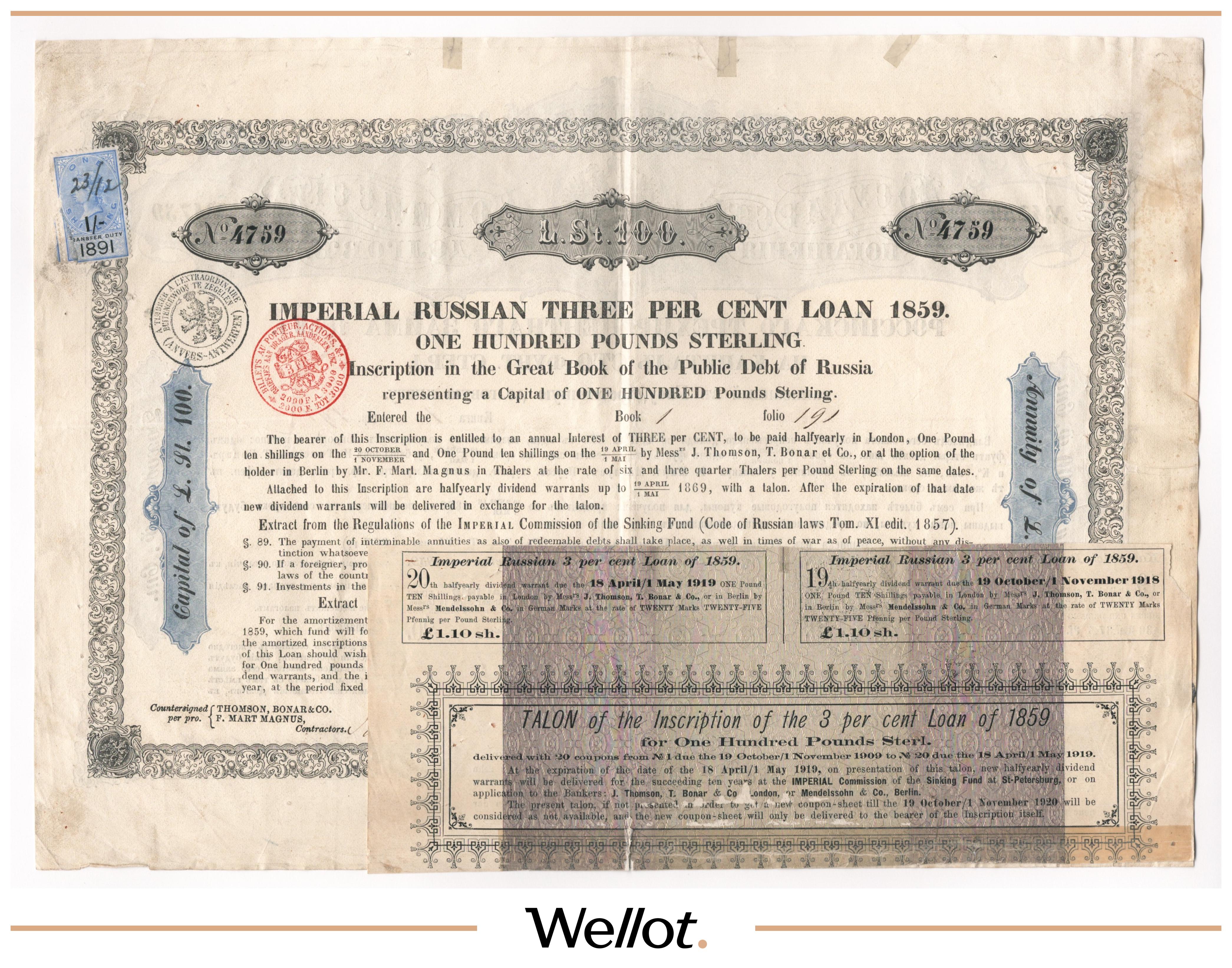 100 Фунтов Стерлингов 1859 Российская Империя Первый 3% Заем
