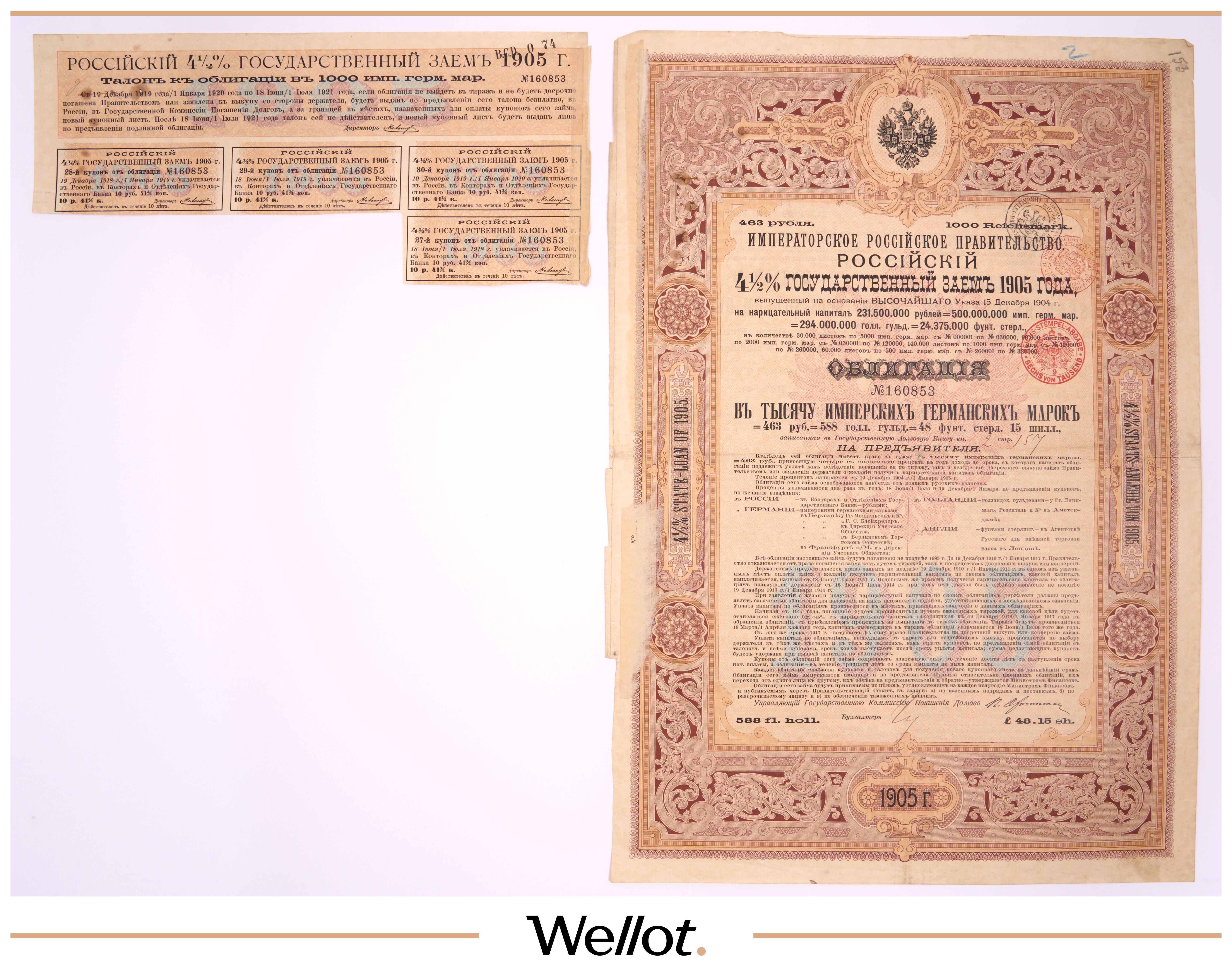 1000 Германских Марок 1905 Российская Империя 4,5% Государственный Заем