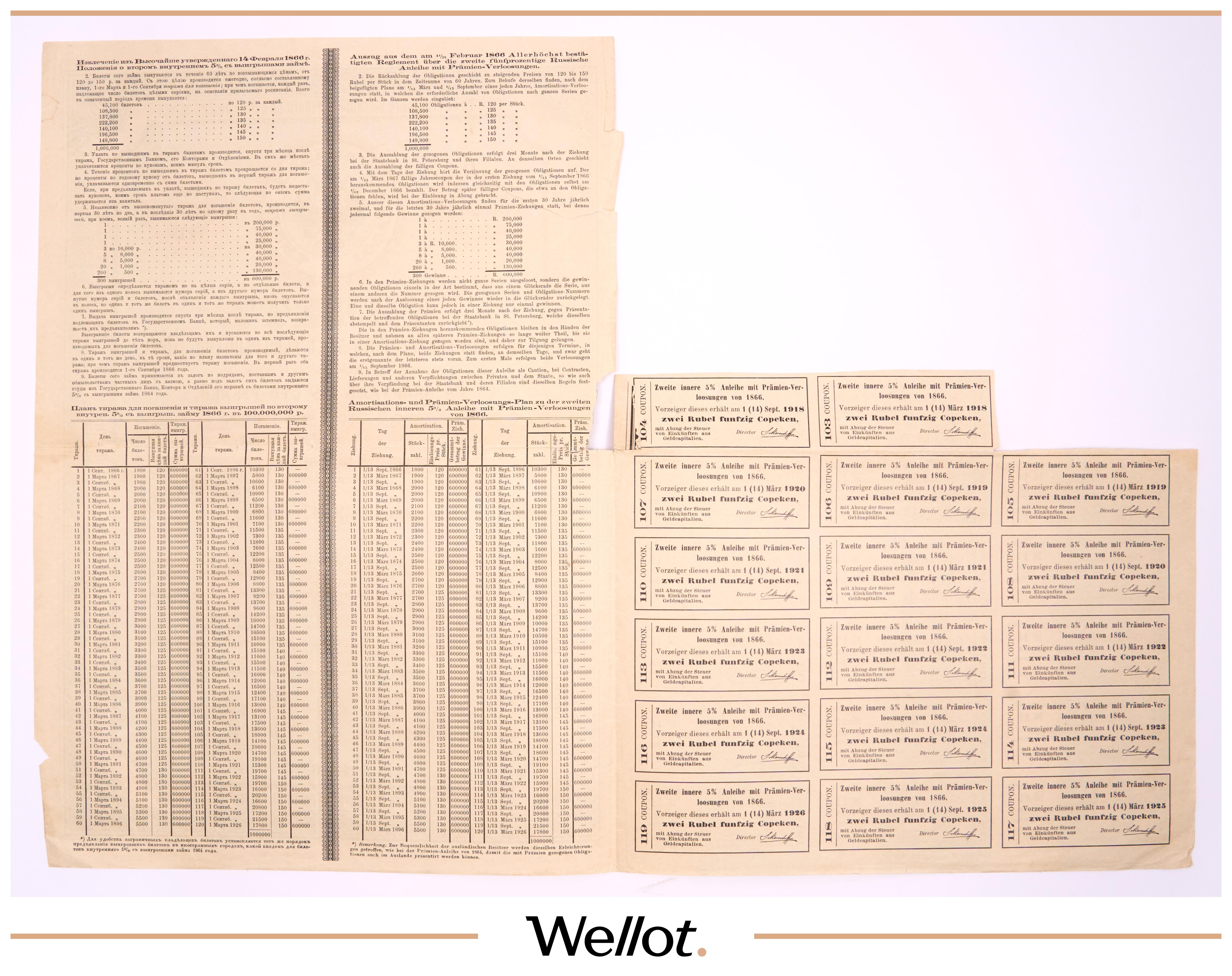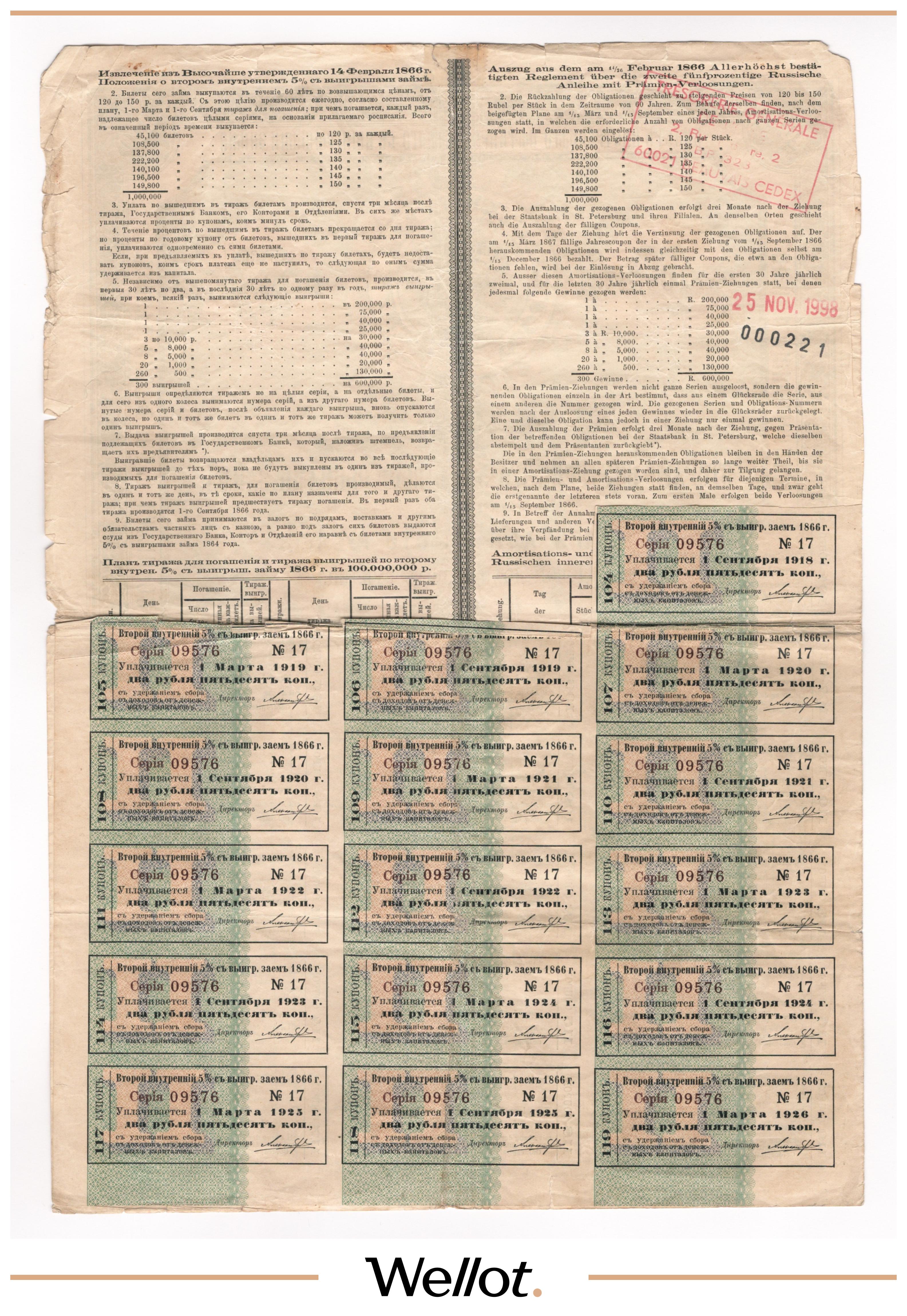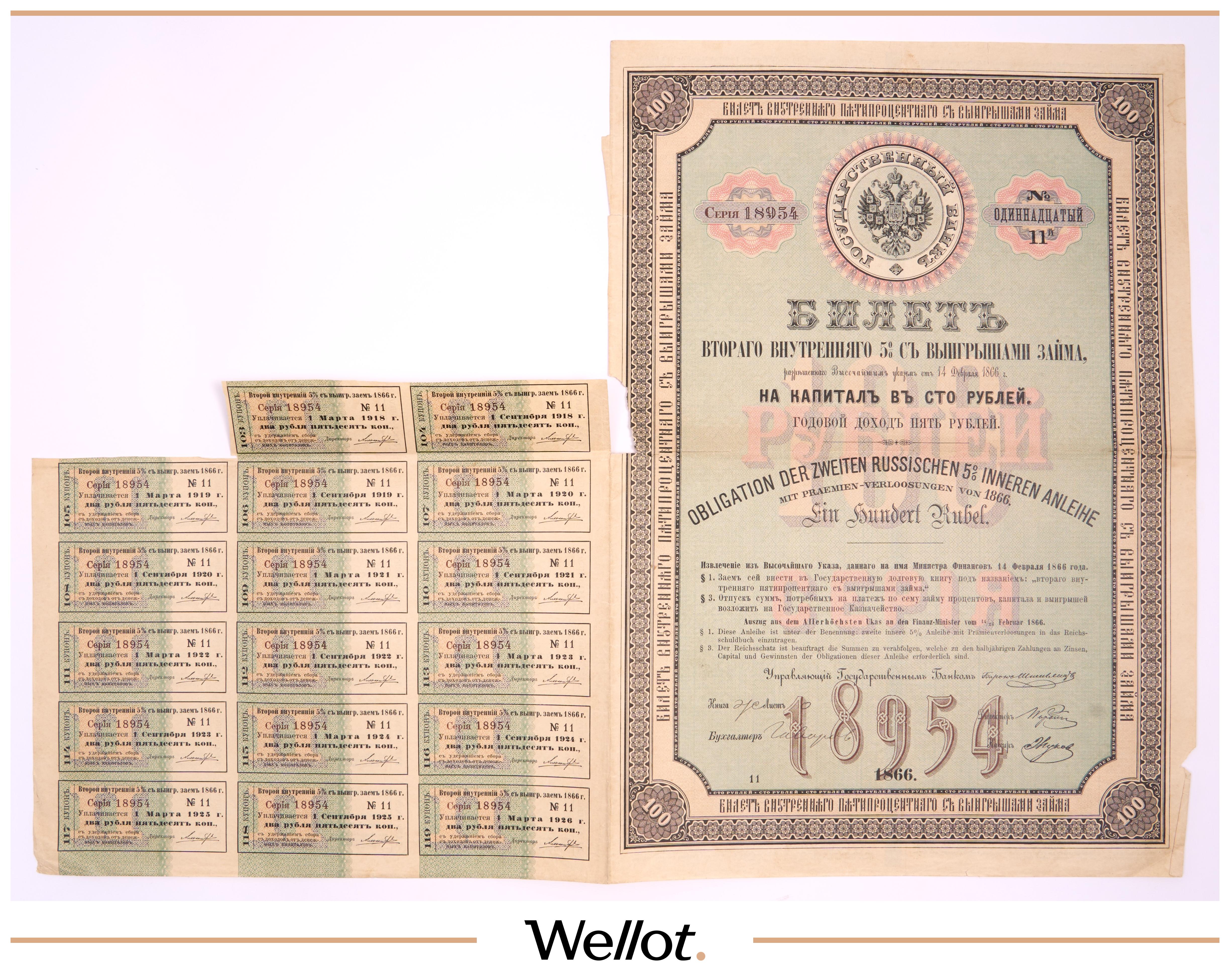 100 Рублей 1866 Российская Империя Второй Внутренний 5% Выигрышный Заем 2 шт