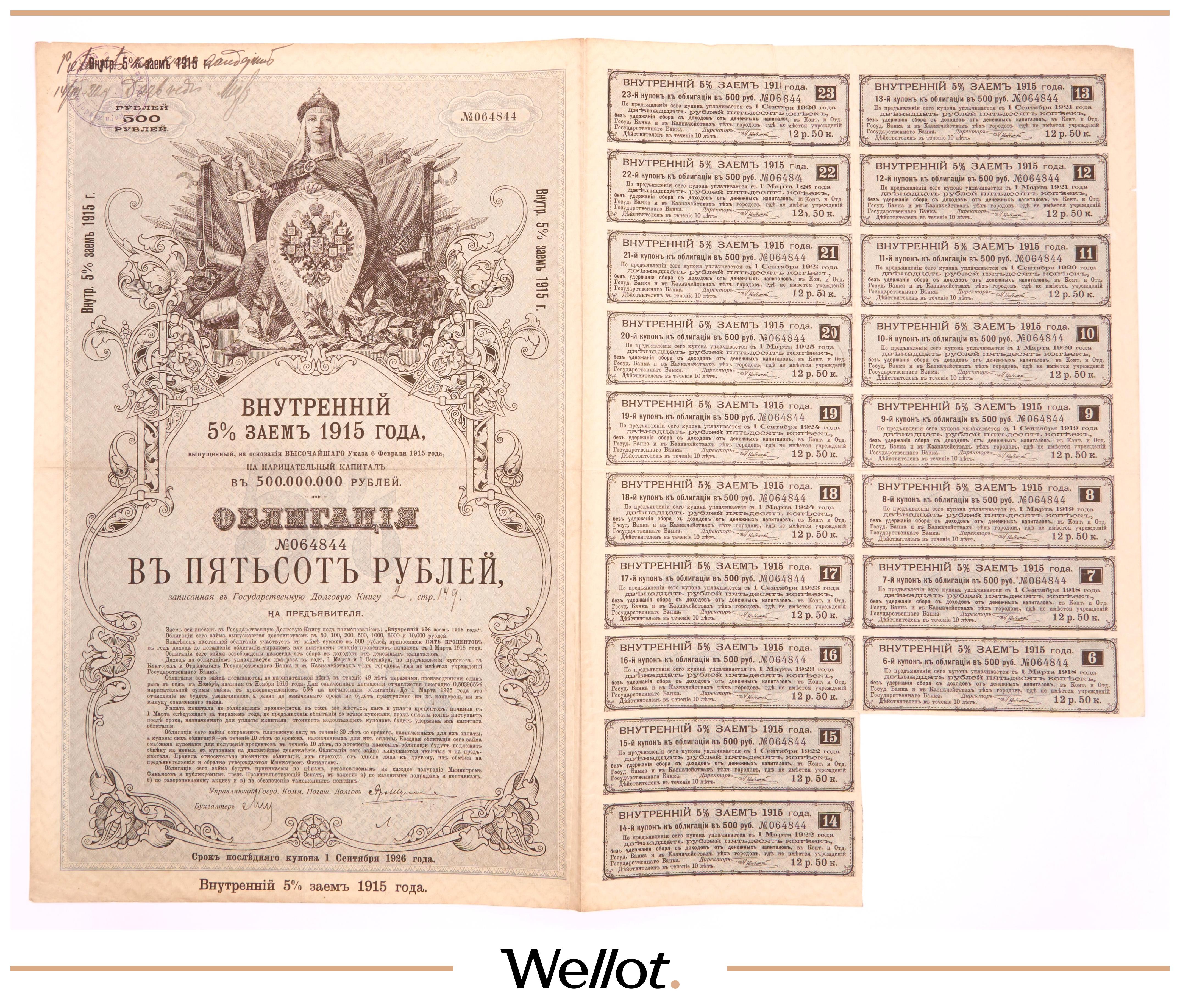 500 Рублей 1915 Российская Империя Внутренний 5% Заем
