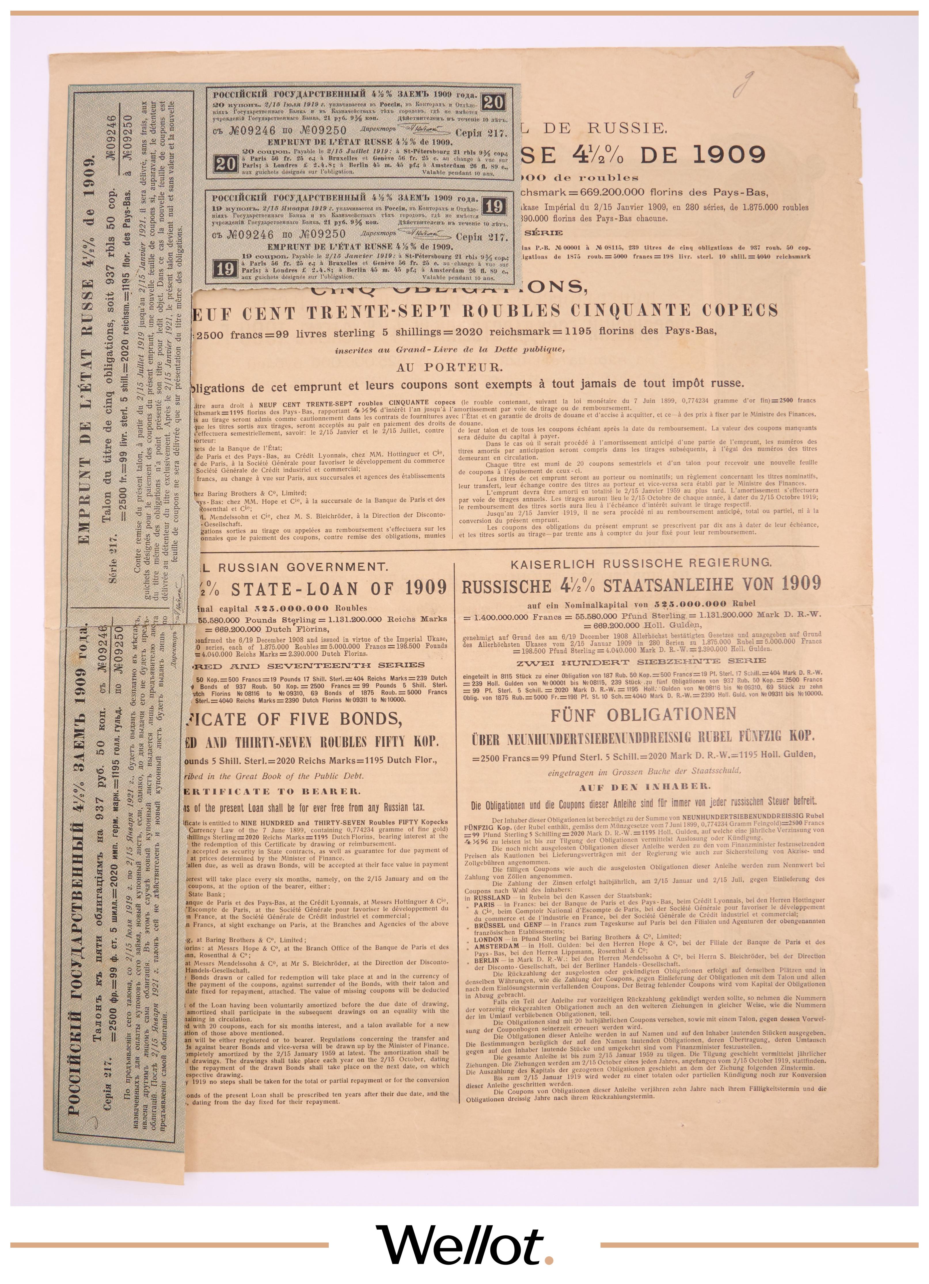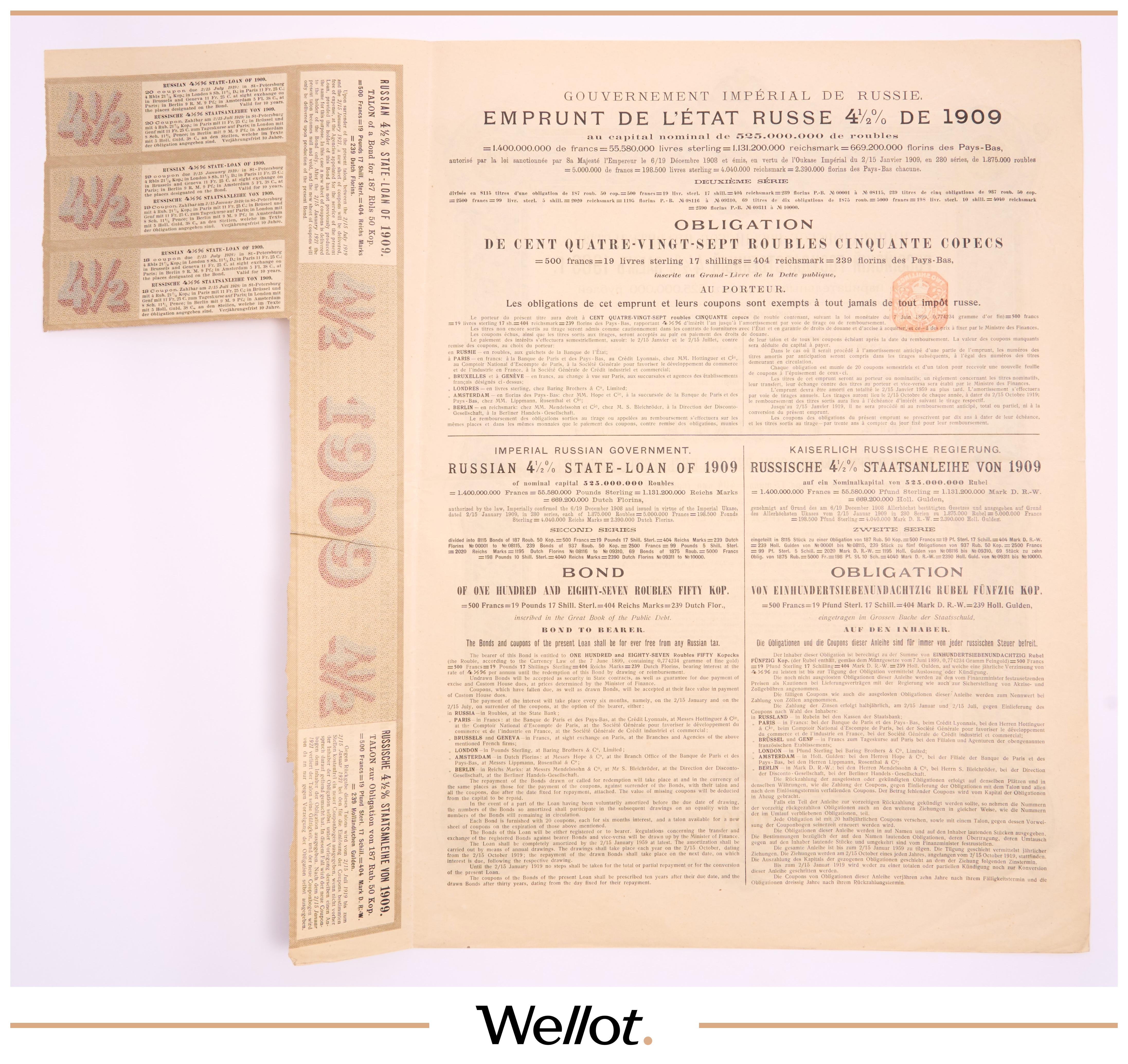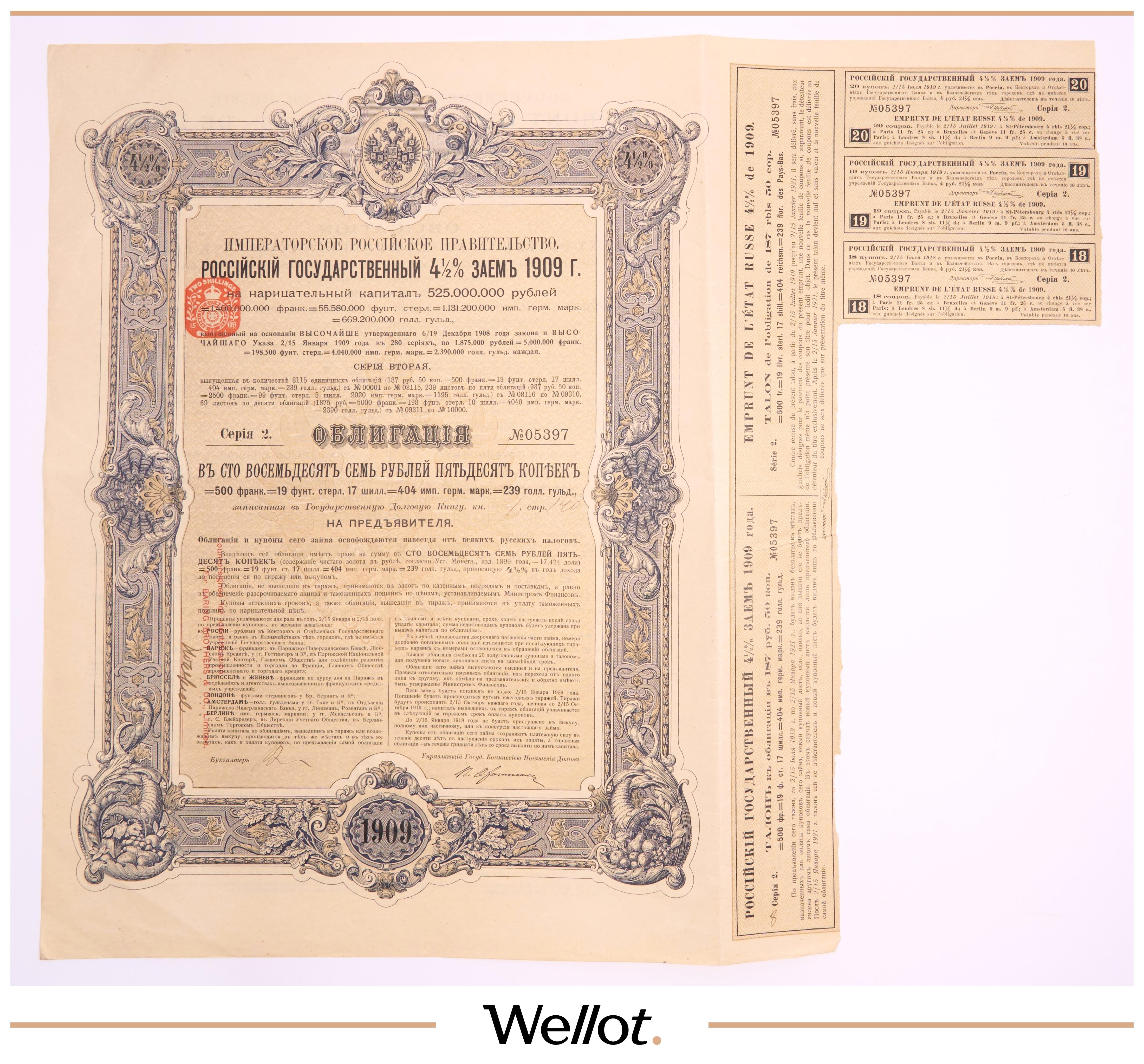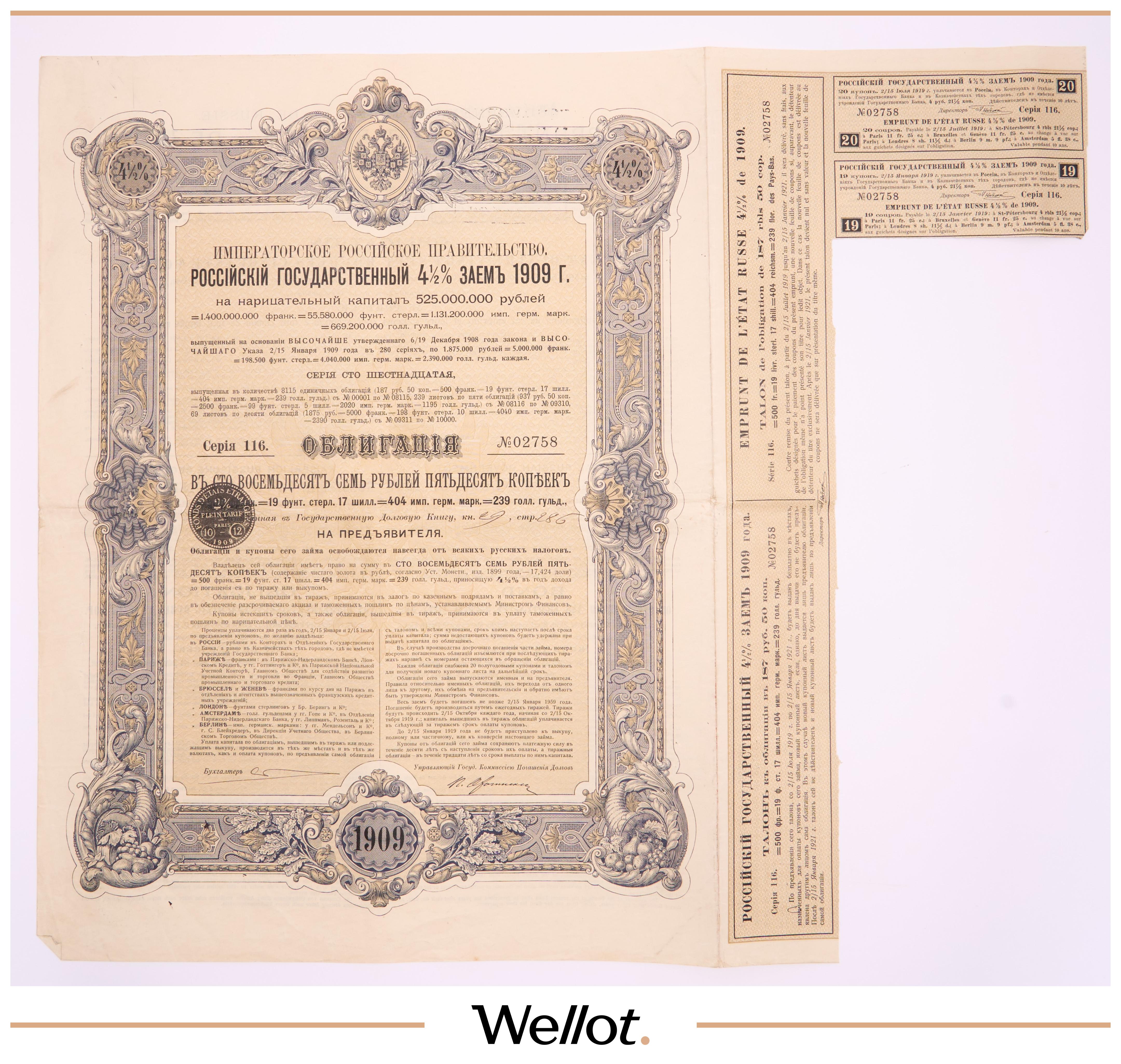187 Рублей 50 Копеек 1909 Российская Империя Государственный 4,5% Заем