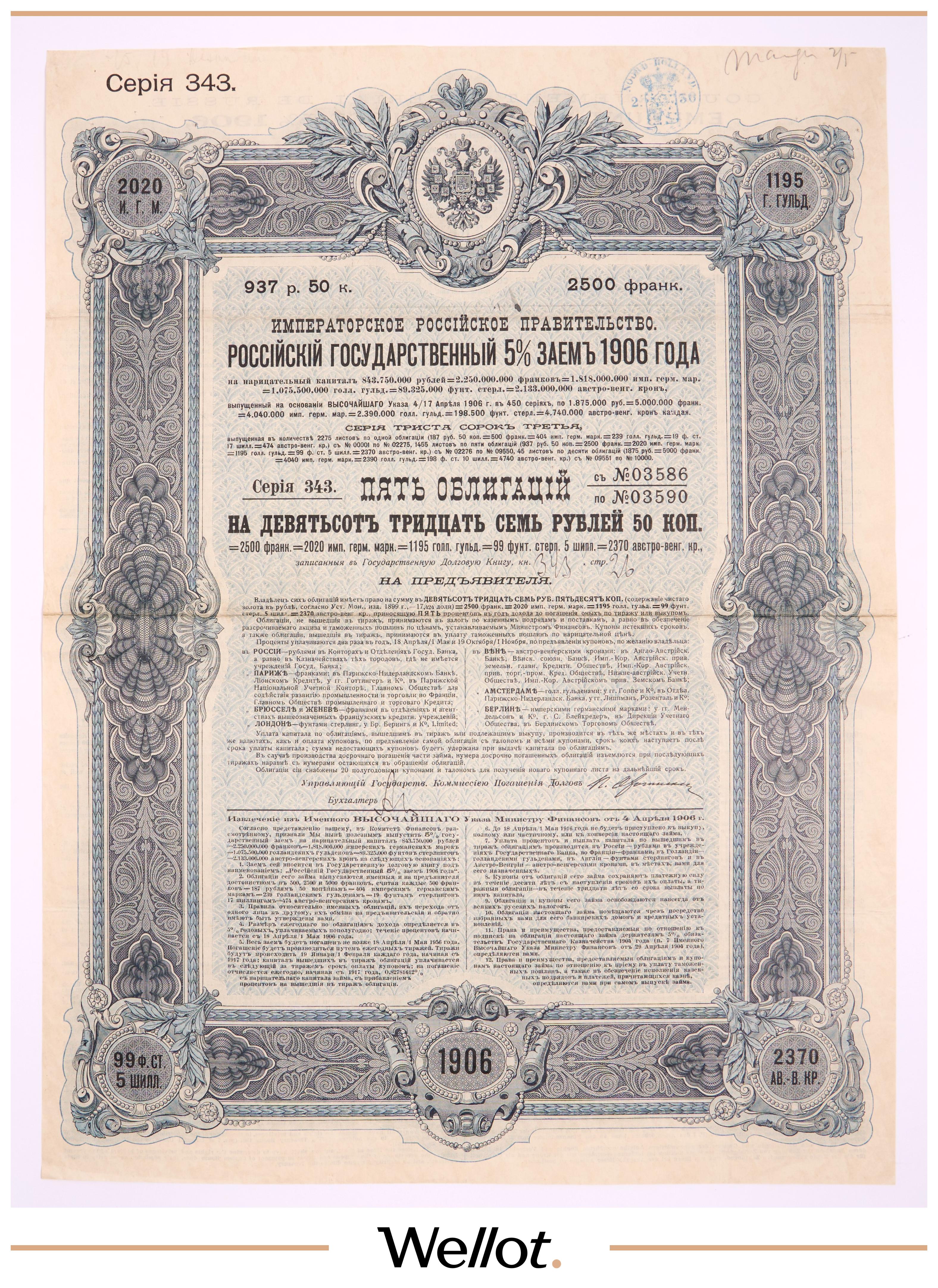 937 Рублей 50 Копеек 1906 Российская Империя Государственный 5% Заем