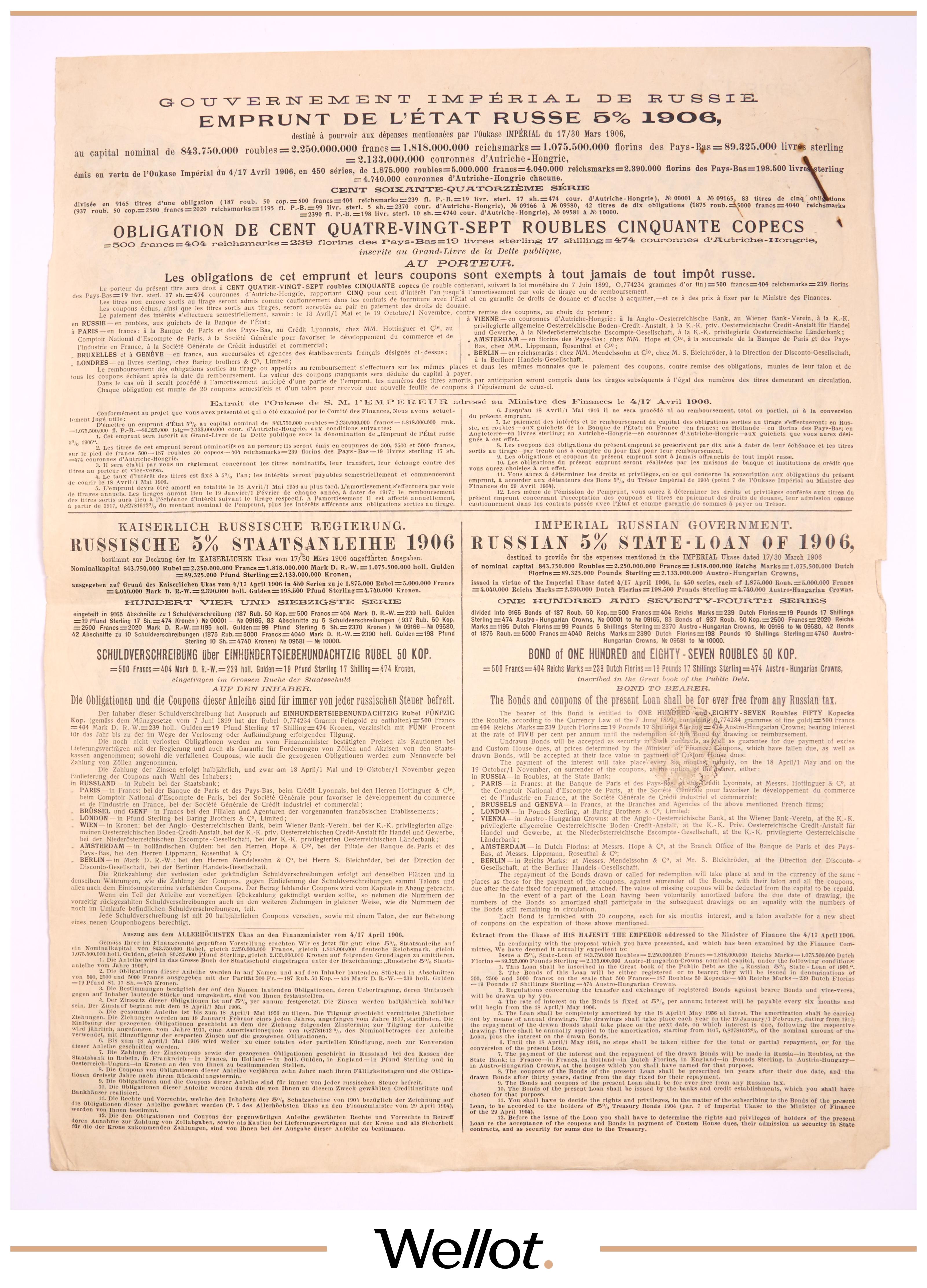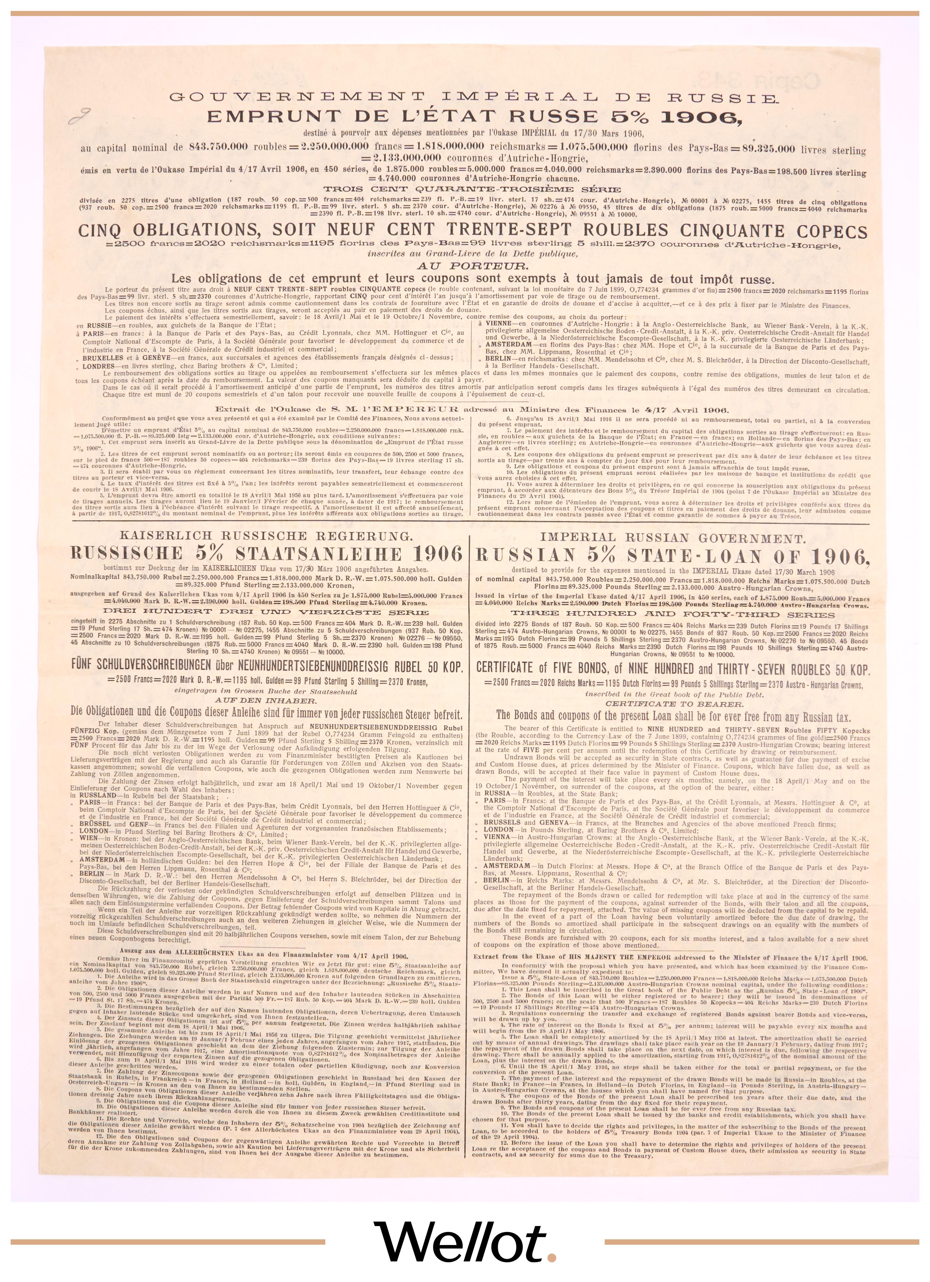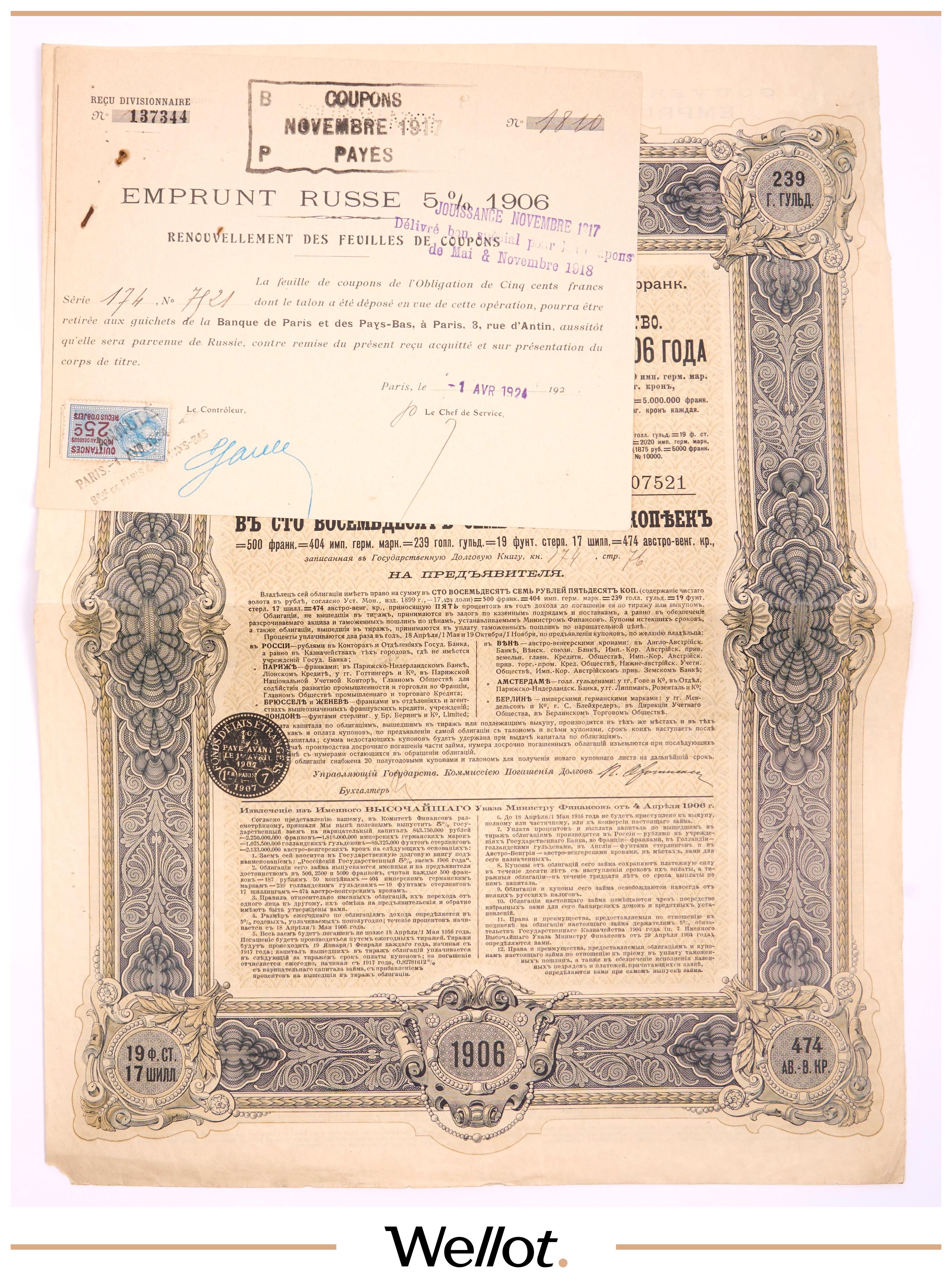 187 Рублей 50 Копеек 1906 Российская Империя Государственный 5% Заем