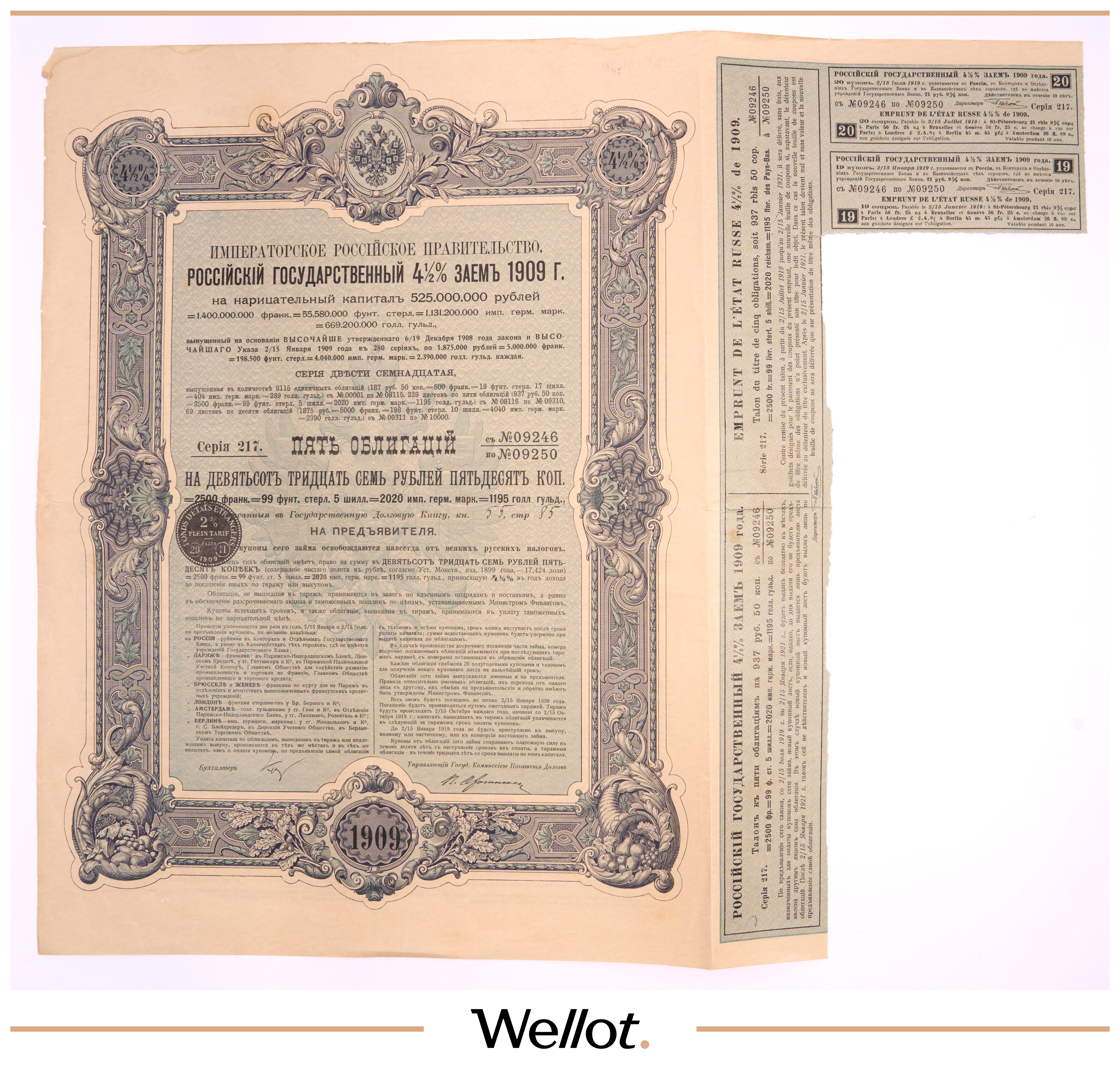 937 Рублей 50 Копеек 1909 Российская Империя Государственный 4,5% Заем