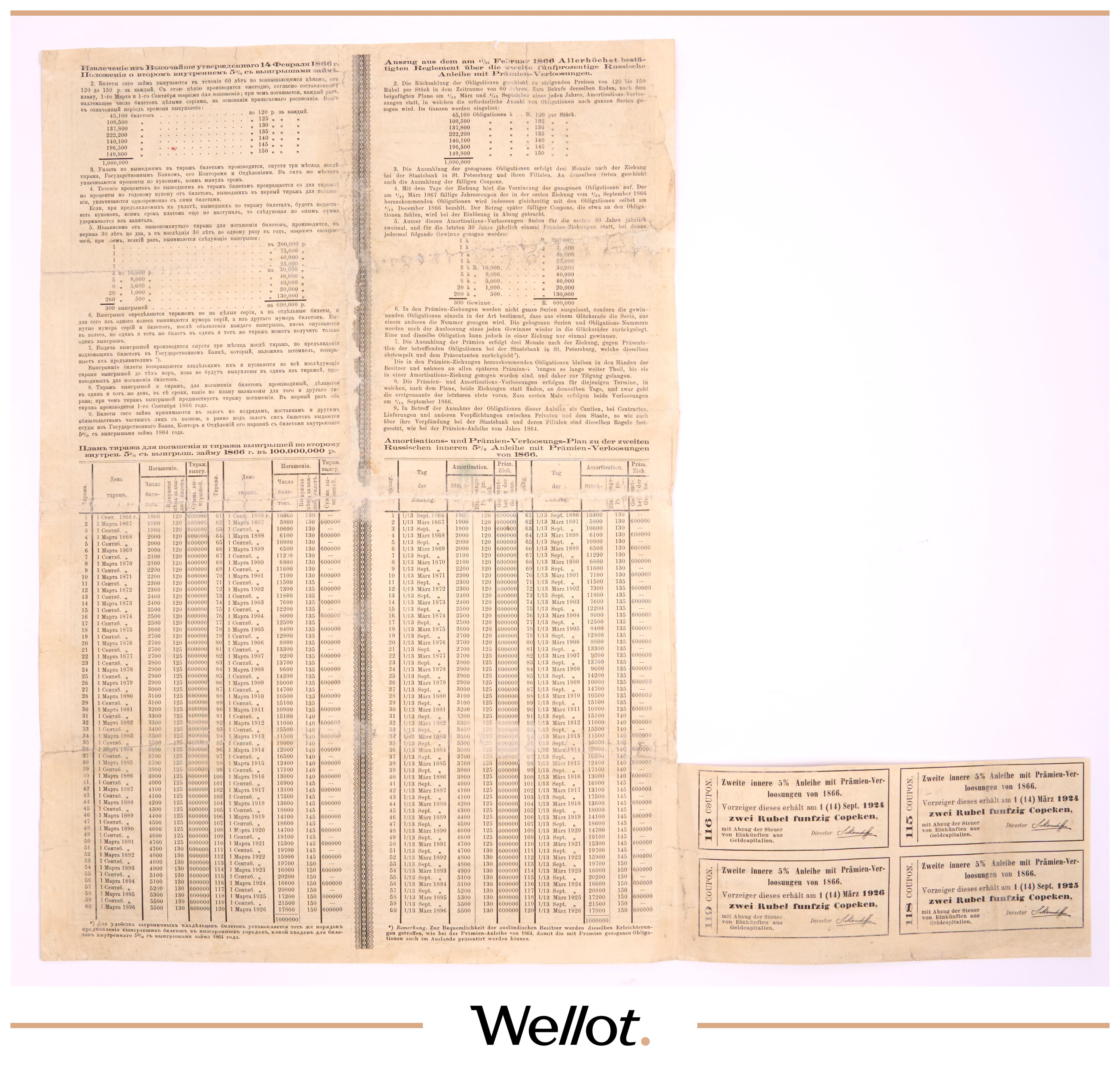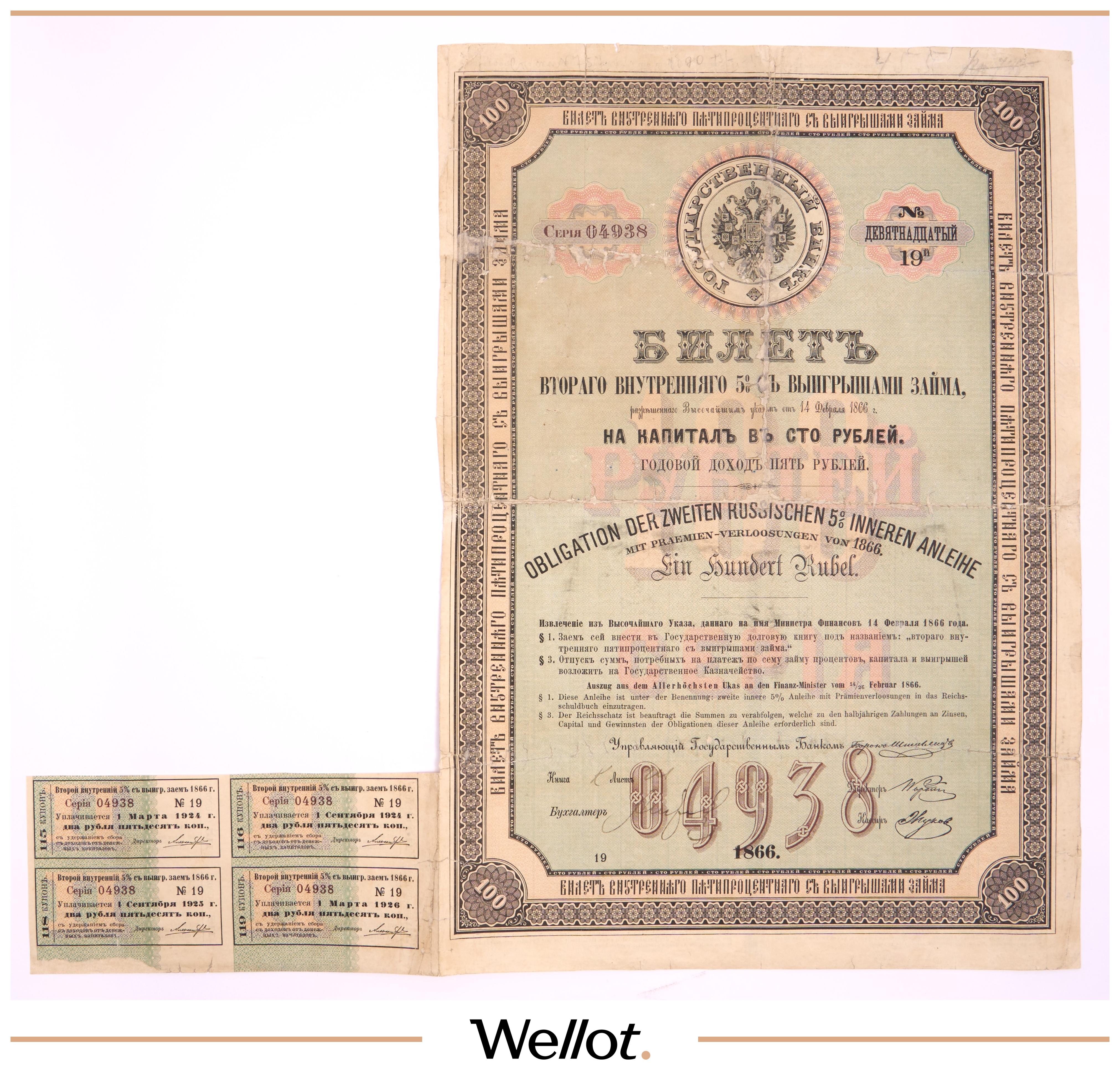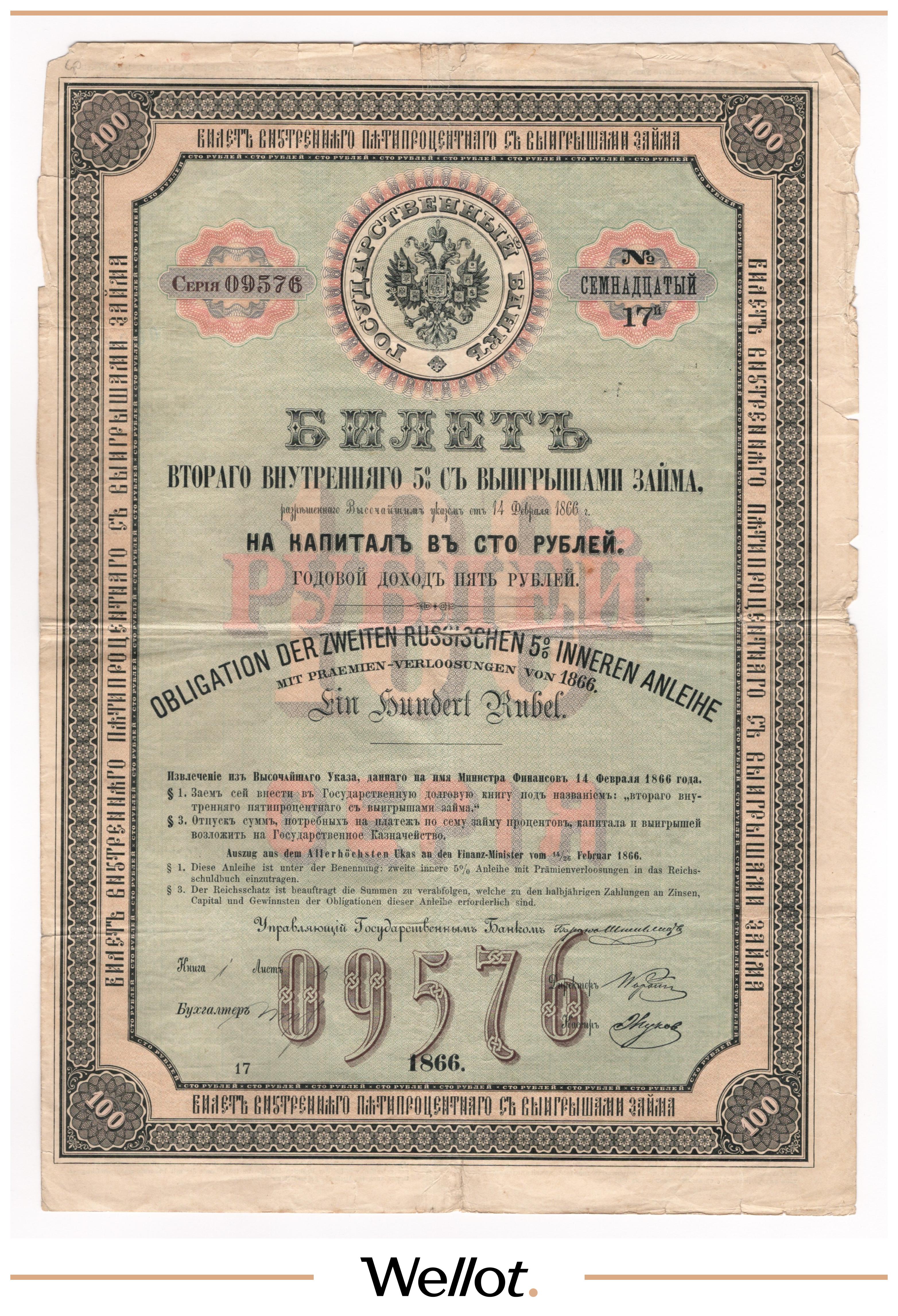 100 Рублей 1866 Российская Империя Второй Внутренний 5% Выигрышный Заем