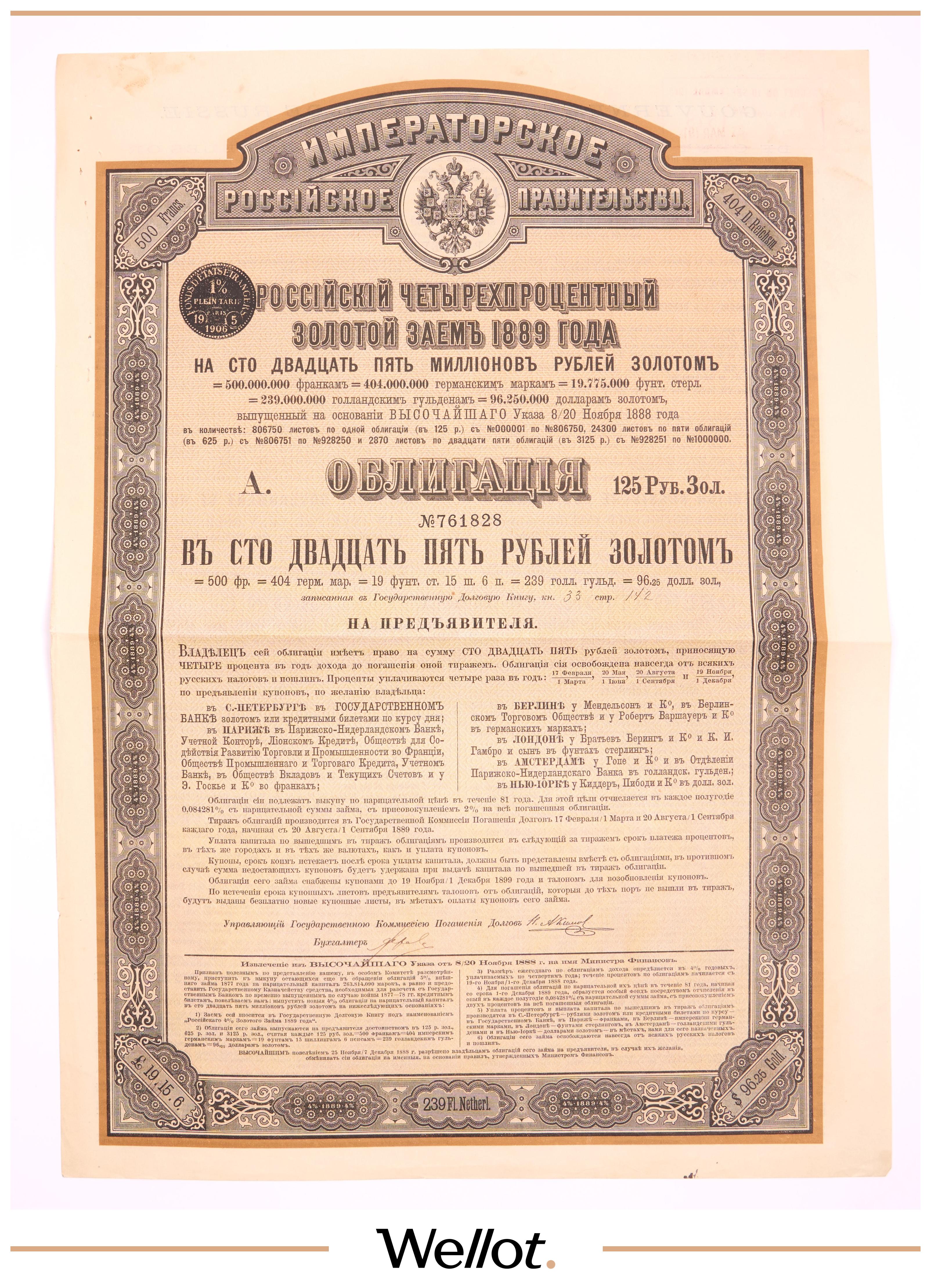 125 Рублей Золотом 1889 Российская Империя Первый 4% Золотой Заем