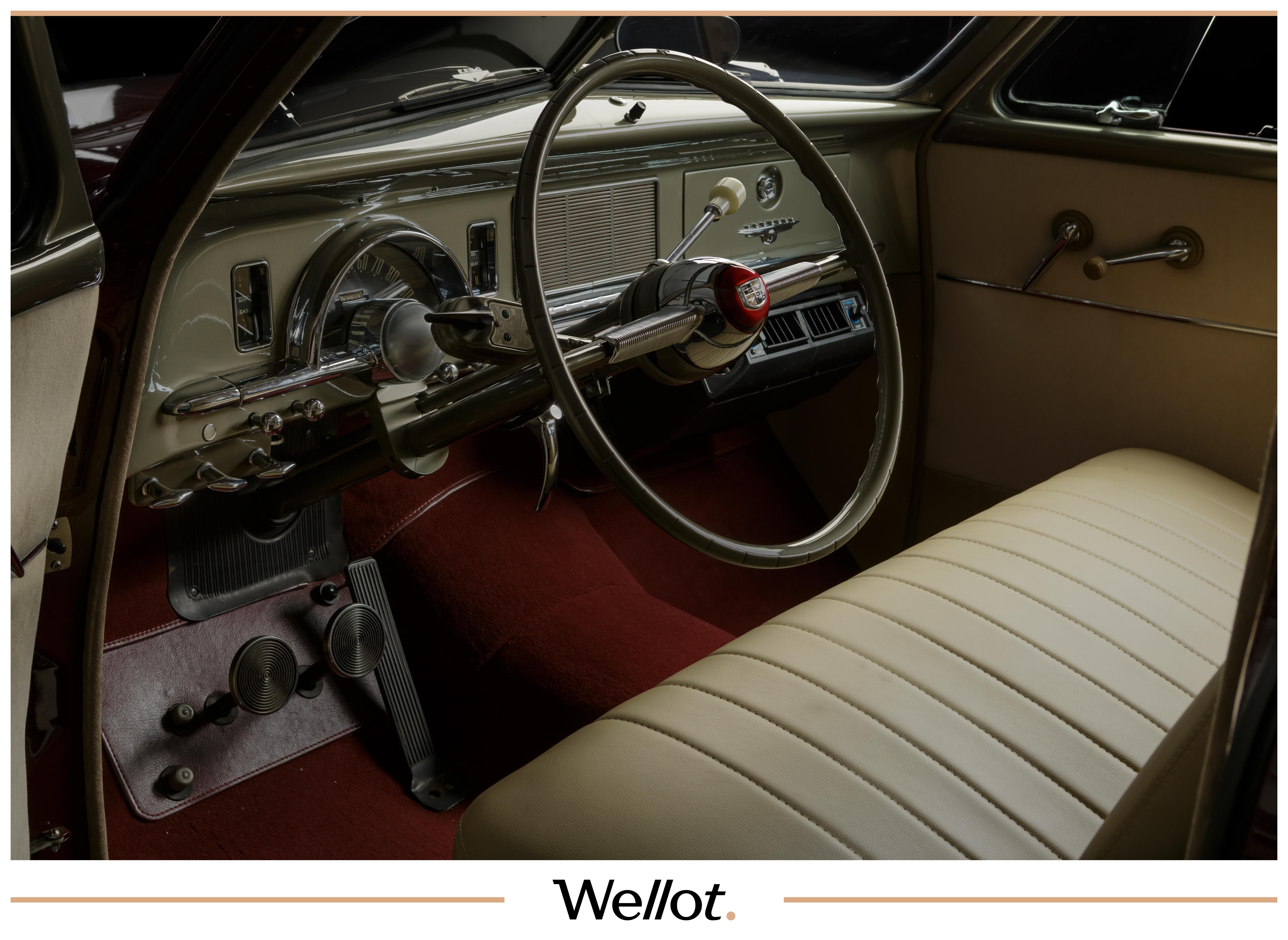 Перед вами полностью отреставрированный экземпляр Studebaker Champion третьего поколения. Автомобиль окрашен в фирменный вишнёвый цвет, соответствующий заводской спецификации, что подчёркивает его аутентичность. Под капотом установлен рядный шестицилиндровый двигатель в сочетании с 3-ступенчатой механической коробкой передач с овердрайвом — типичная и надёжная конфигурация для этой модели. Кузов выполнен в версии седан, однако в своё время Champion также предлагался в вариантах купе и кабриолет.