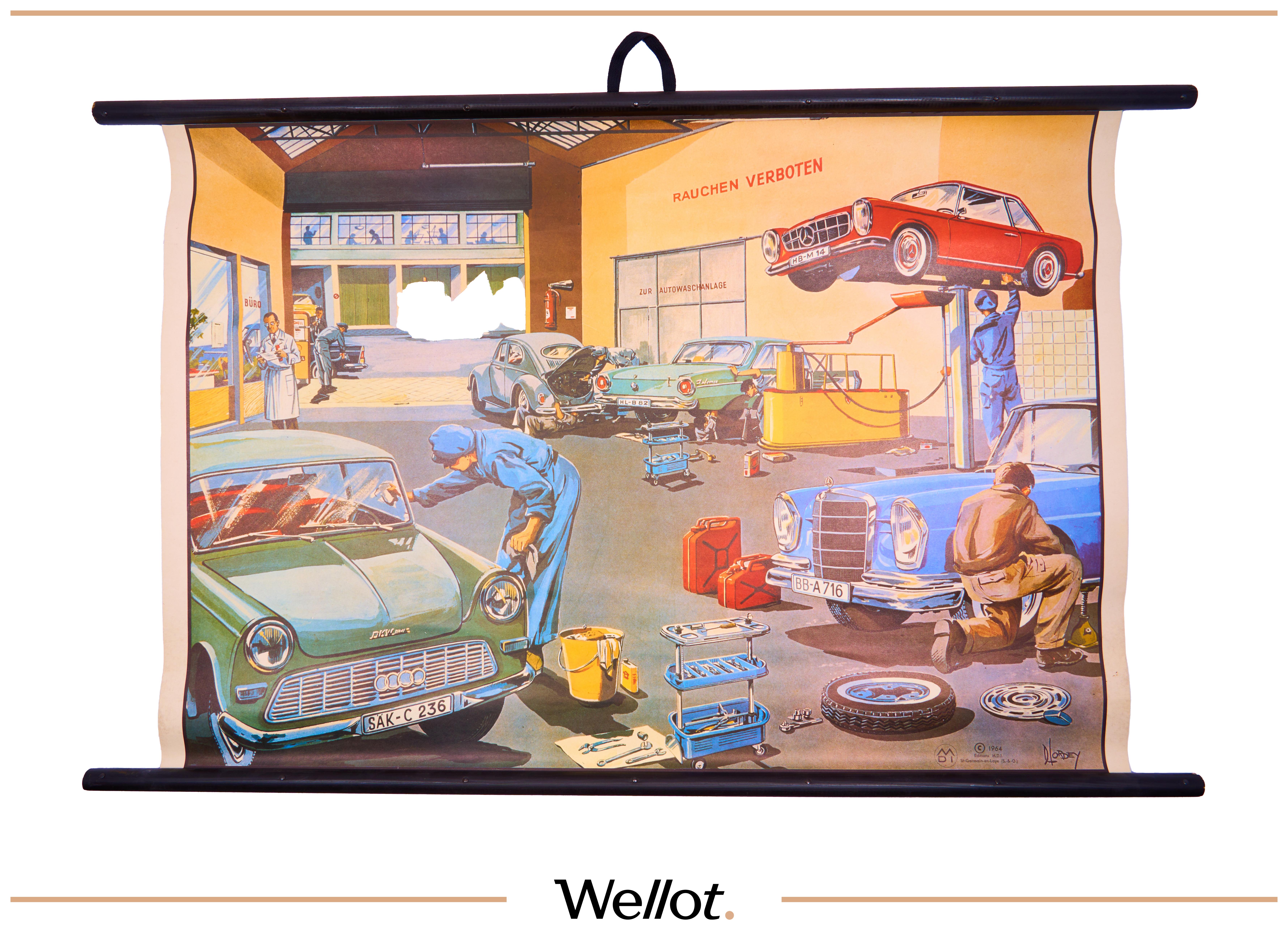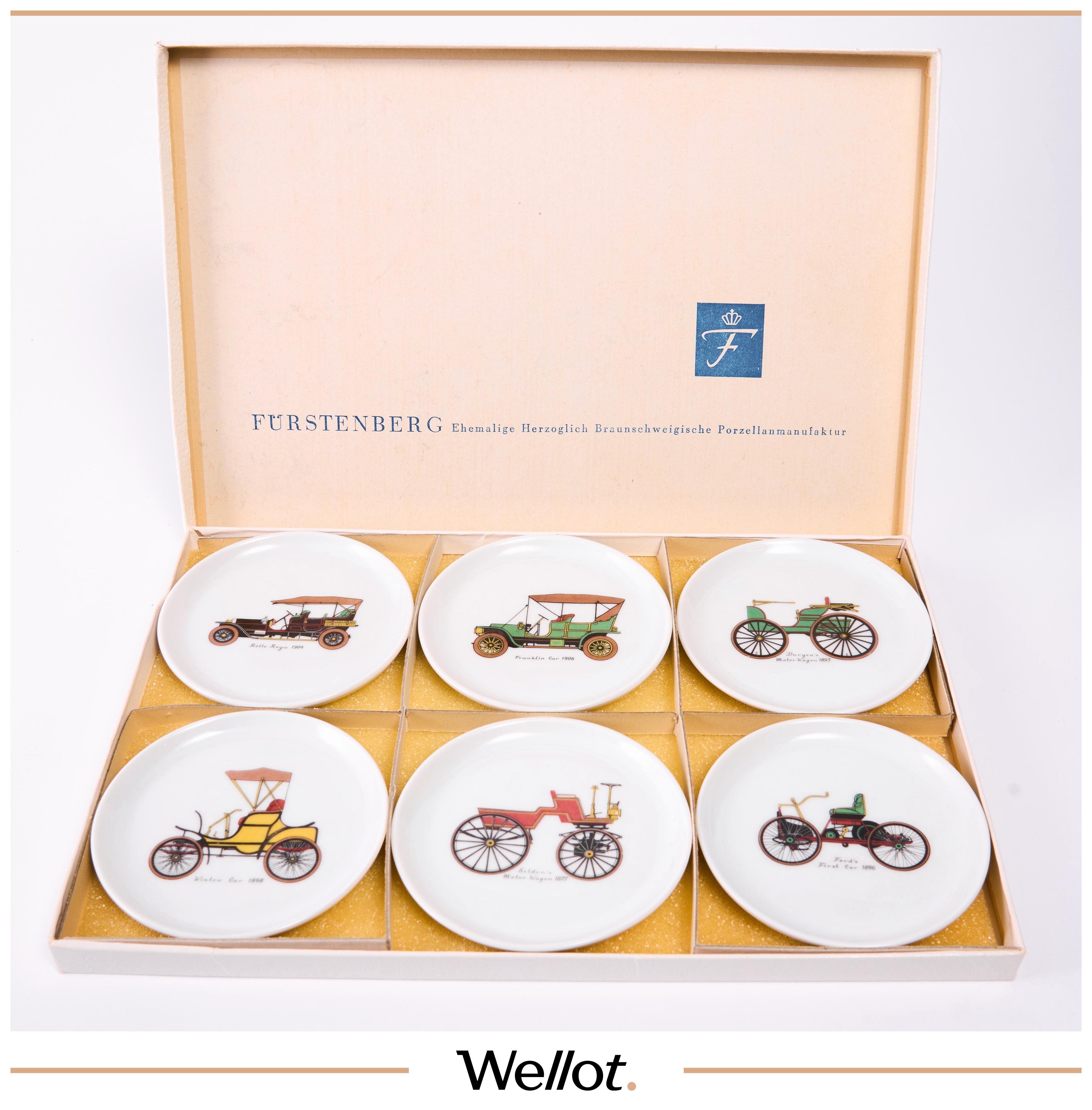 Набор коллекционных фарфоровых тарелок немецкой мануфактуры Fürstenberg с изображением старинных автомобилей, 6 предметов