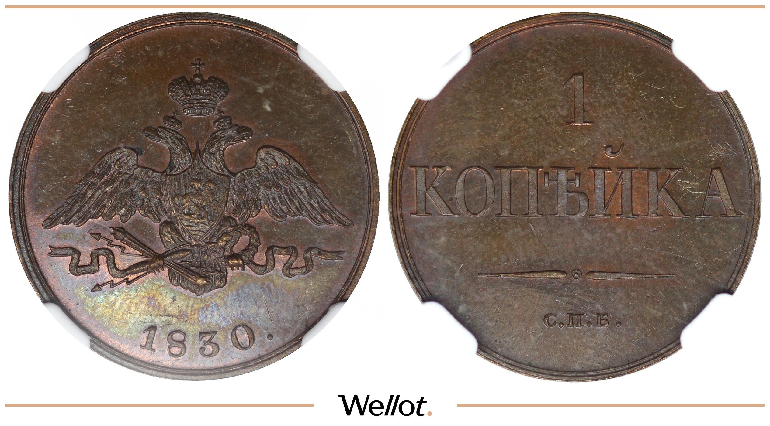 1 Копейка 1830 СПБ Николай I Пробная Новодел NGC PF63BN