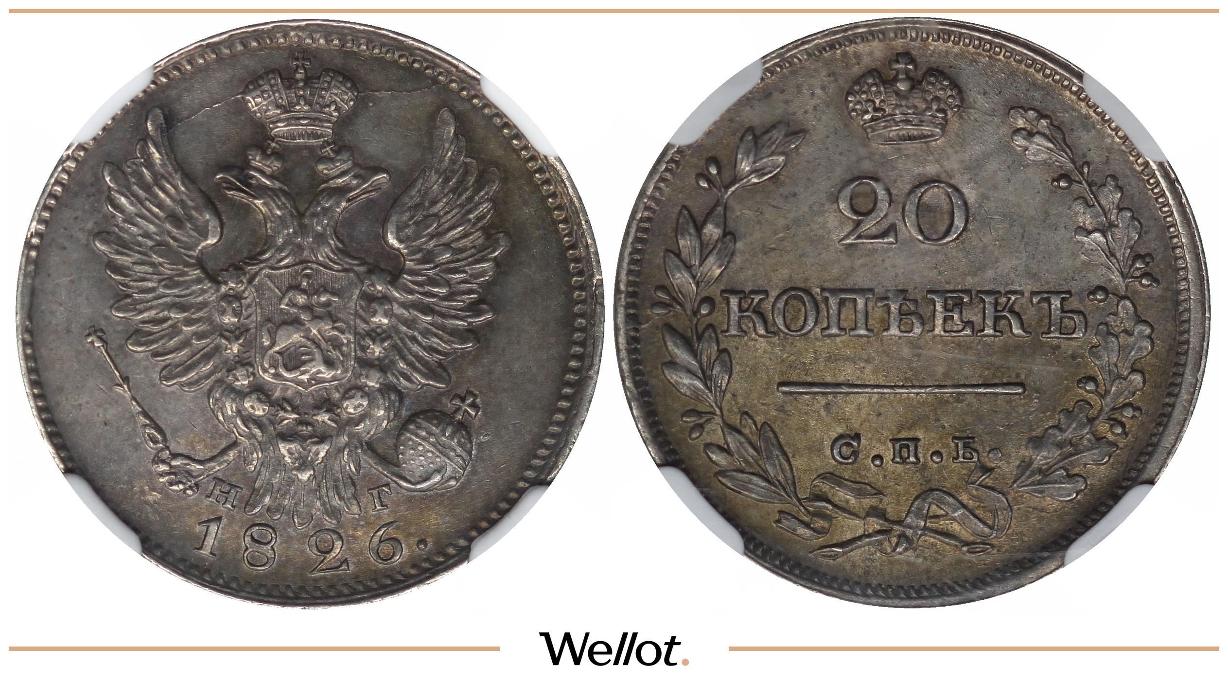 20 Копеек 1826 СПБ НГ Николай I NGC AU58