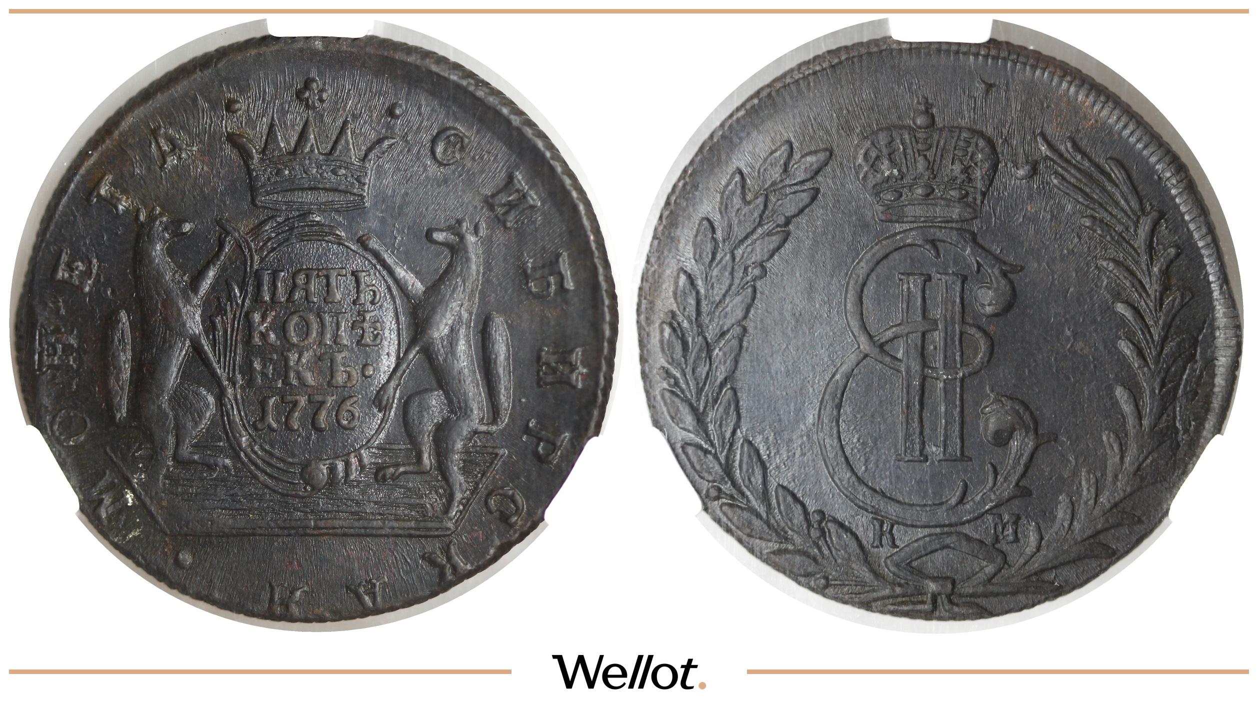 5 Копеек 1776 КМ Екатерина II Сибирь CPRC MS62