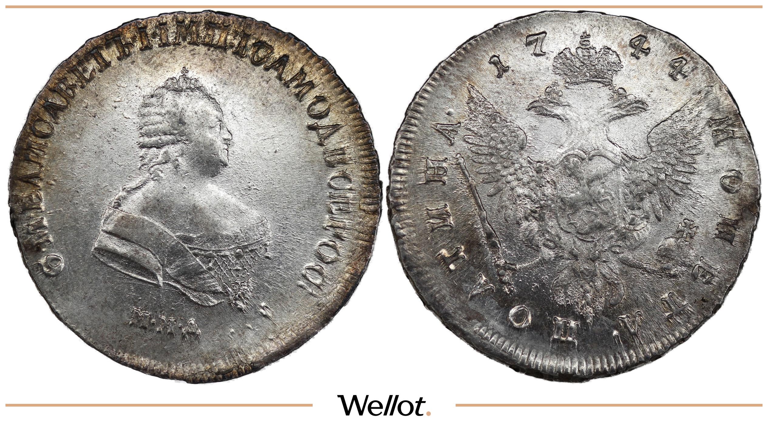 Дьяков# 523.3 Веселов# 1.2. 25,84 г. Диаметр 42,5 мм. Глубокий зеркальный блеск.