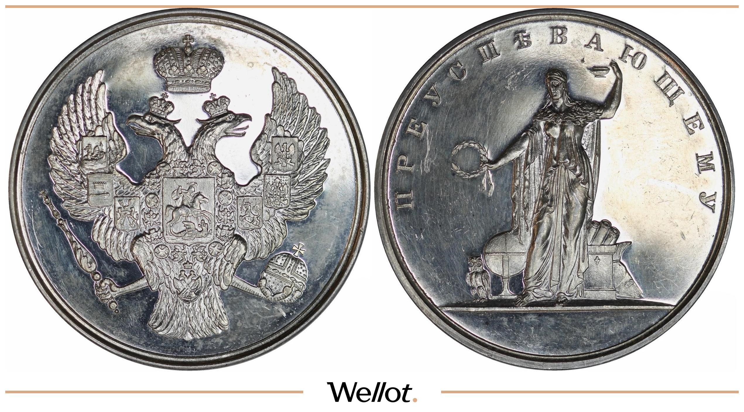 Серебряная Медаль ND (1881-1894) "Преуспевающему" для Окончивших Курс Мужских Гимназий PF