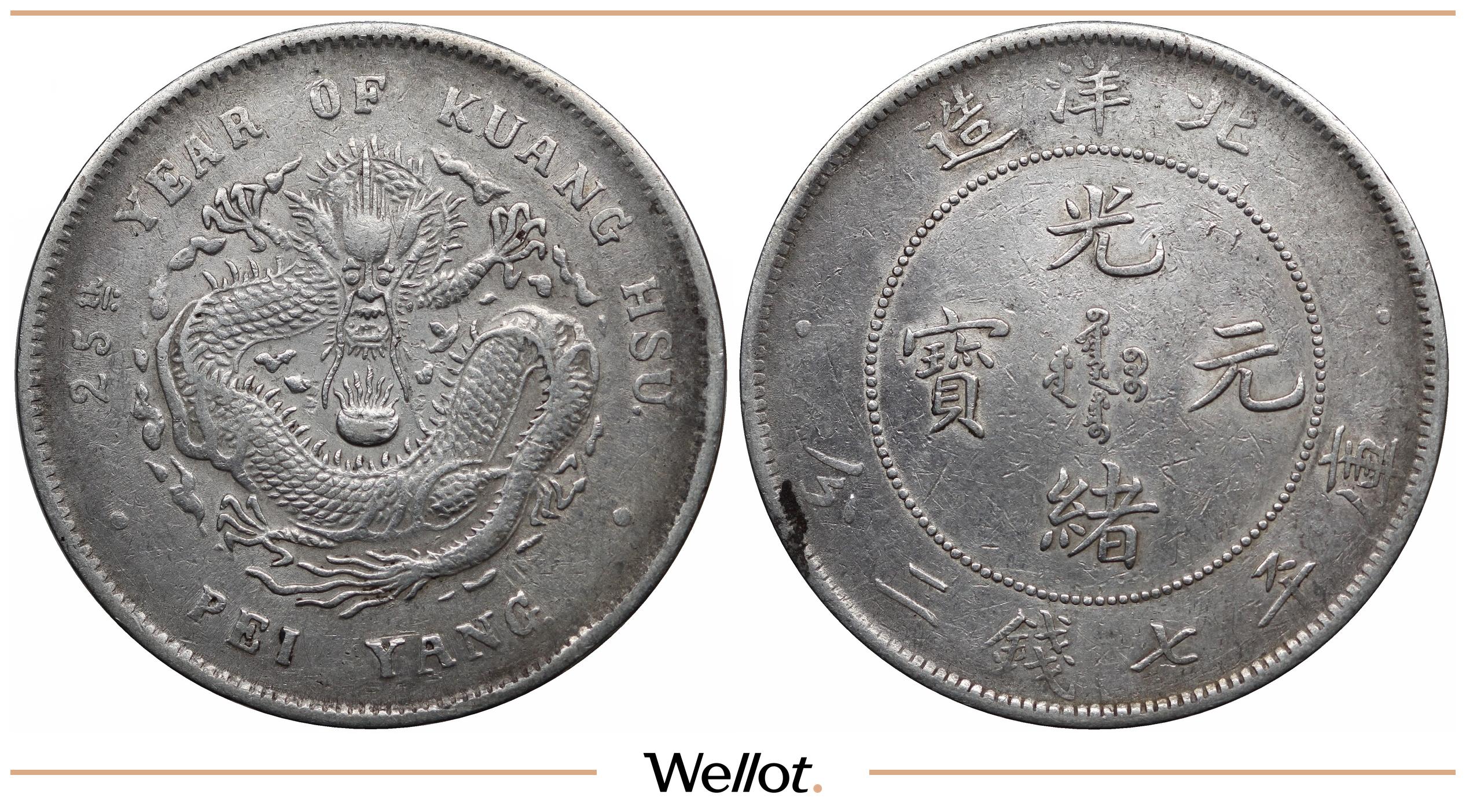 L&M-454; K-196; Y#73; WS-0624. Серебро. 26,74 г. 25й год. Тяньцзинь. Редкая дата, первый год чеканки типа.
