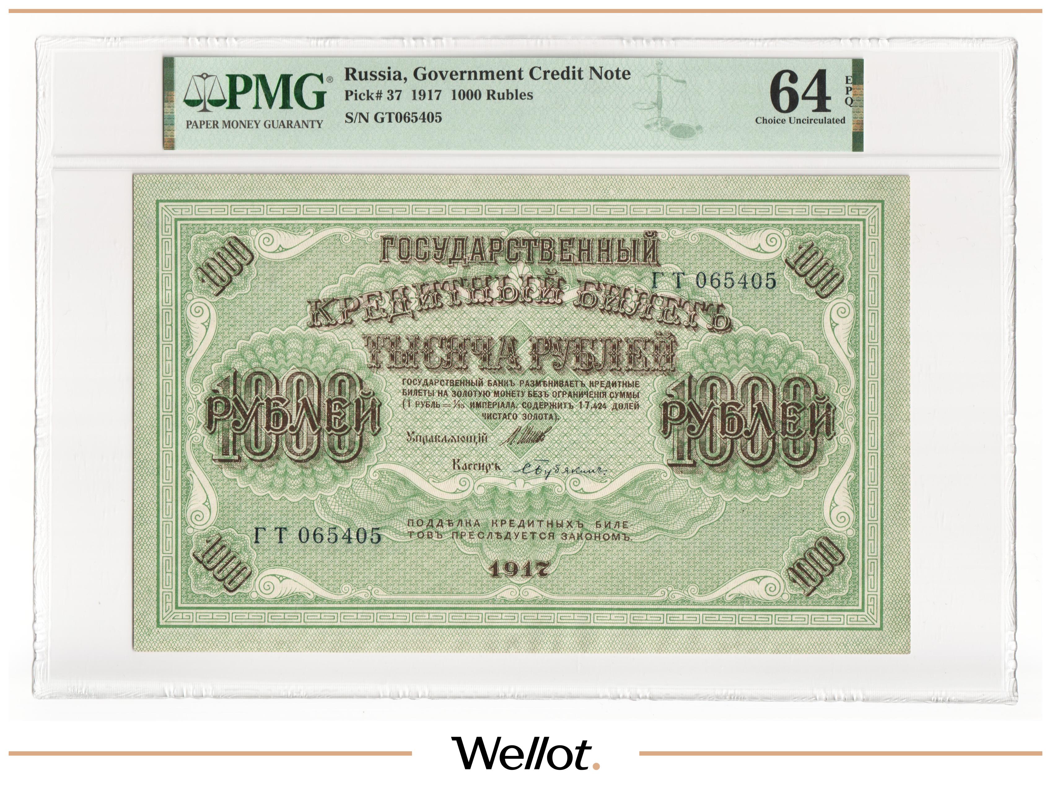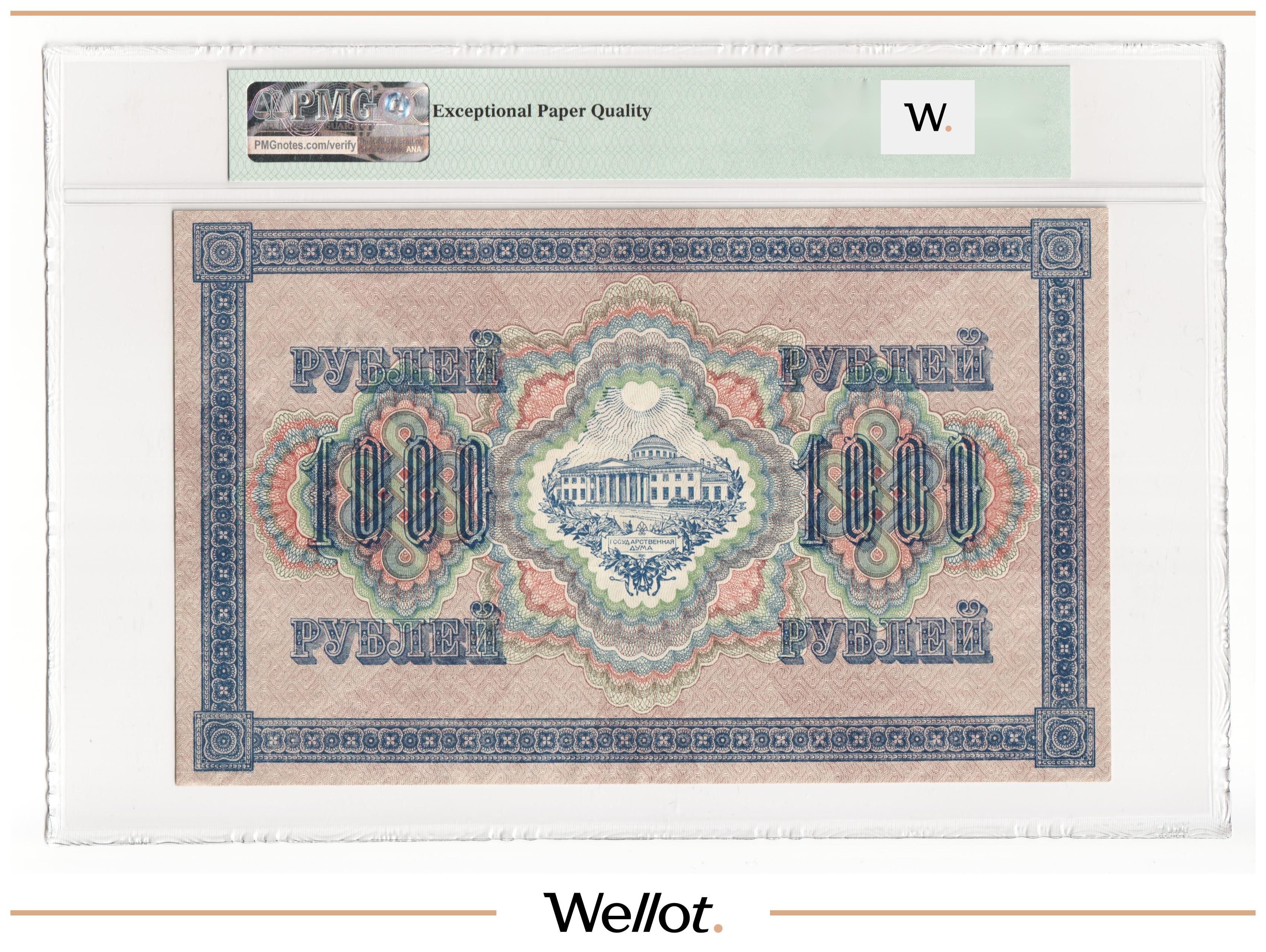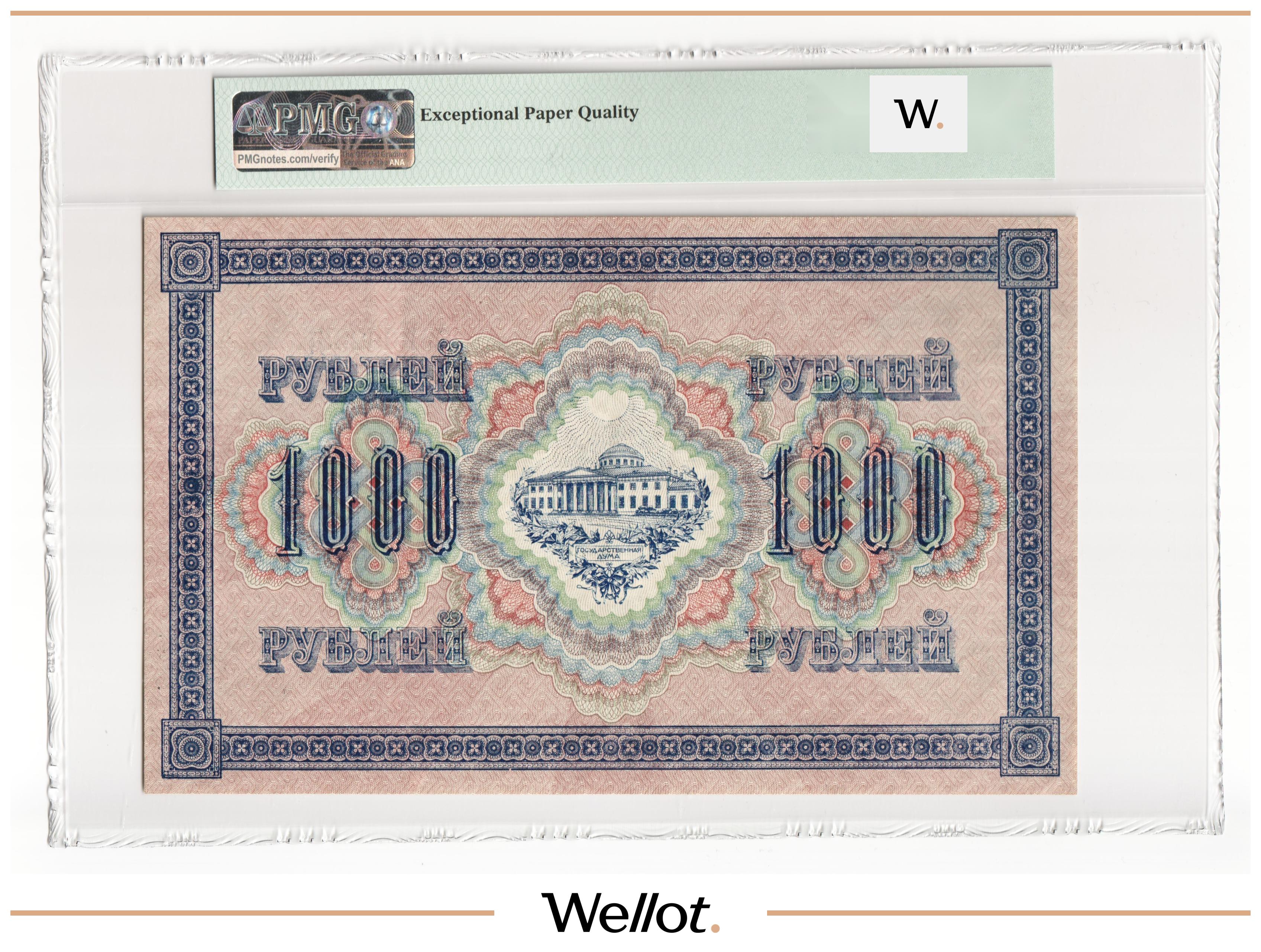 1000 Рублей 1917 Россия Временное Правительство PMG 64 EPQ UNC
