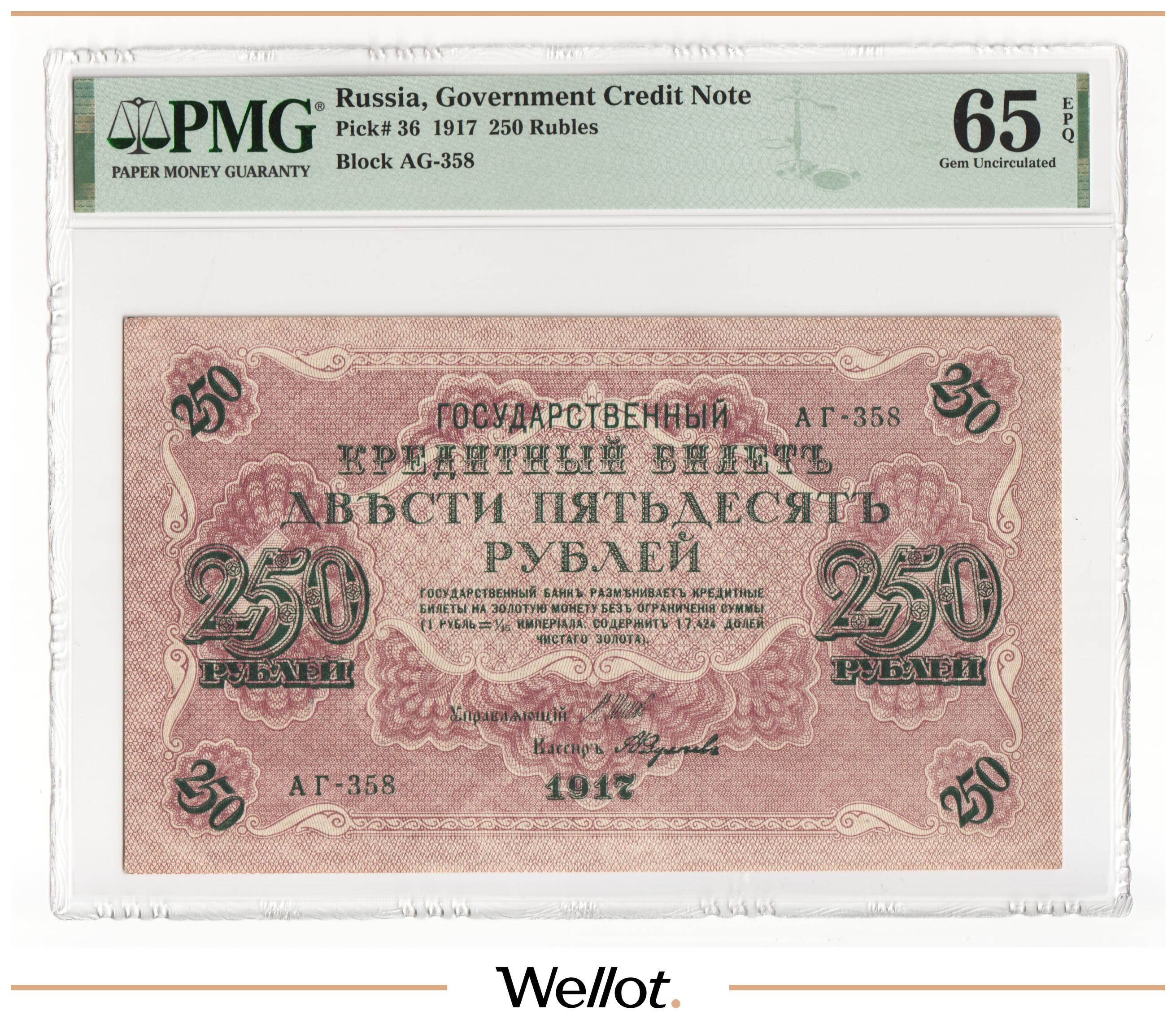 250 Рублей 1917 Россия Временное Правительство PMG 65 EPQ UNC