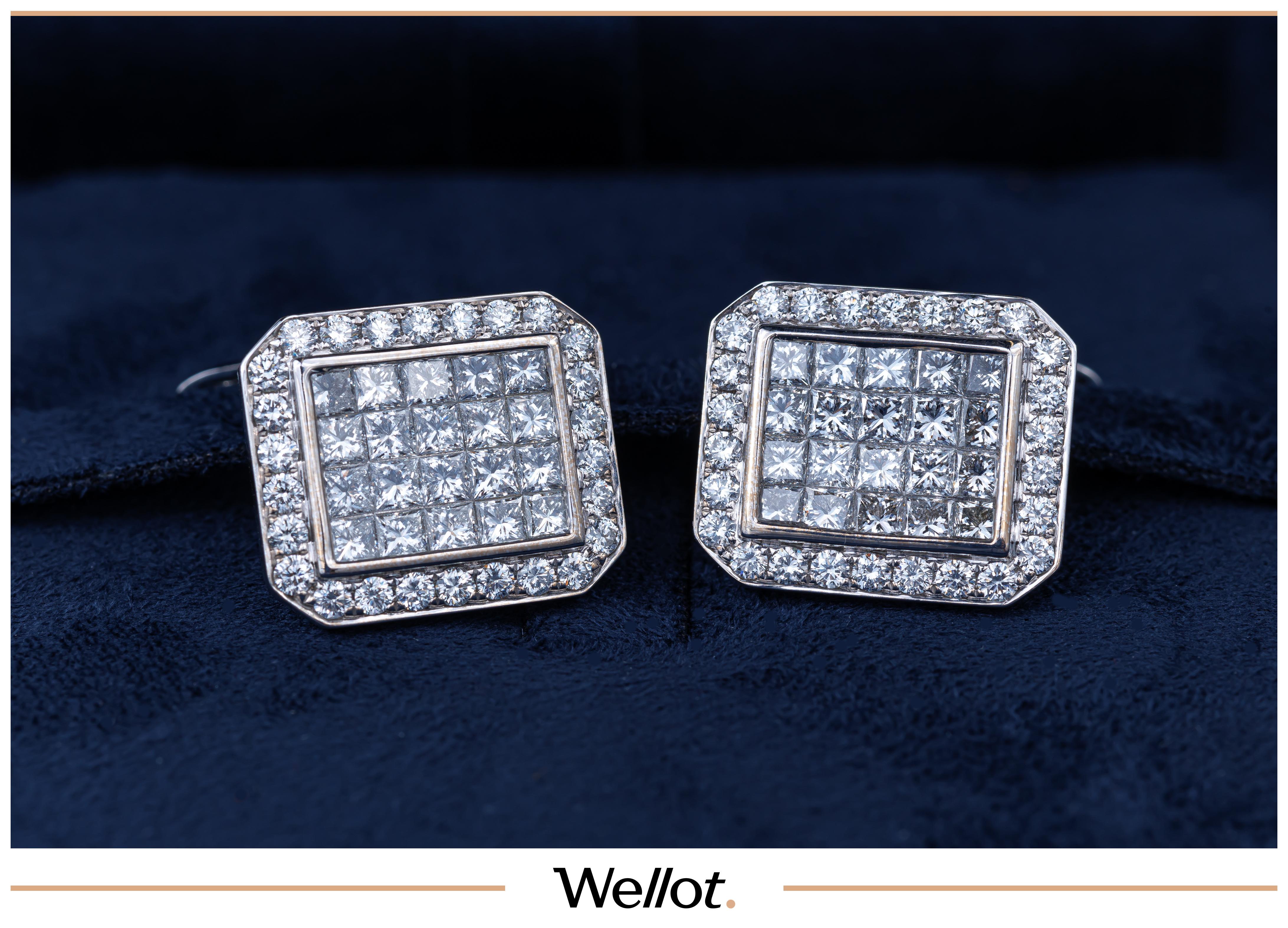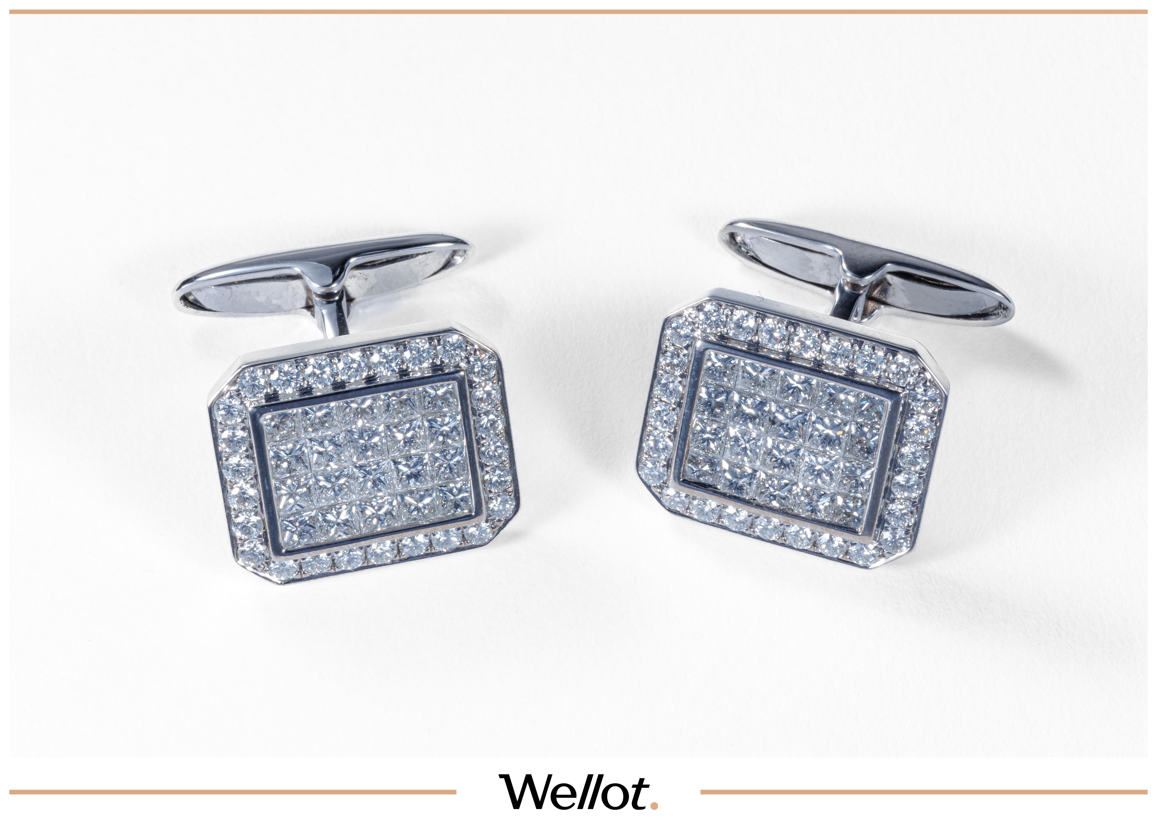 Вес 14,84 гр. Белое золото 750. Бриллианты 5,27 карата (92 шт). Престижные запонки для особого случая. Экспертное заключение Московской геммологической лаборатории от 03.09.2025 за подписью заведующего Д.В. Попова
