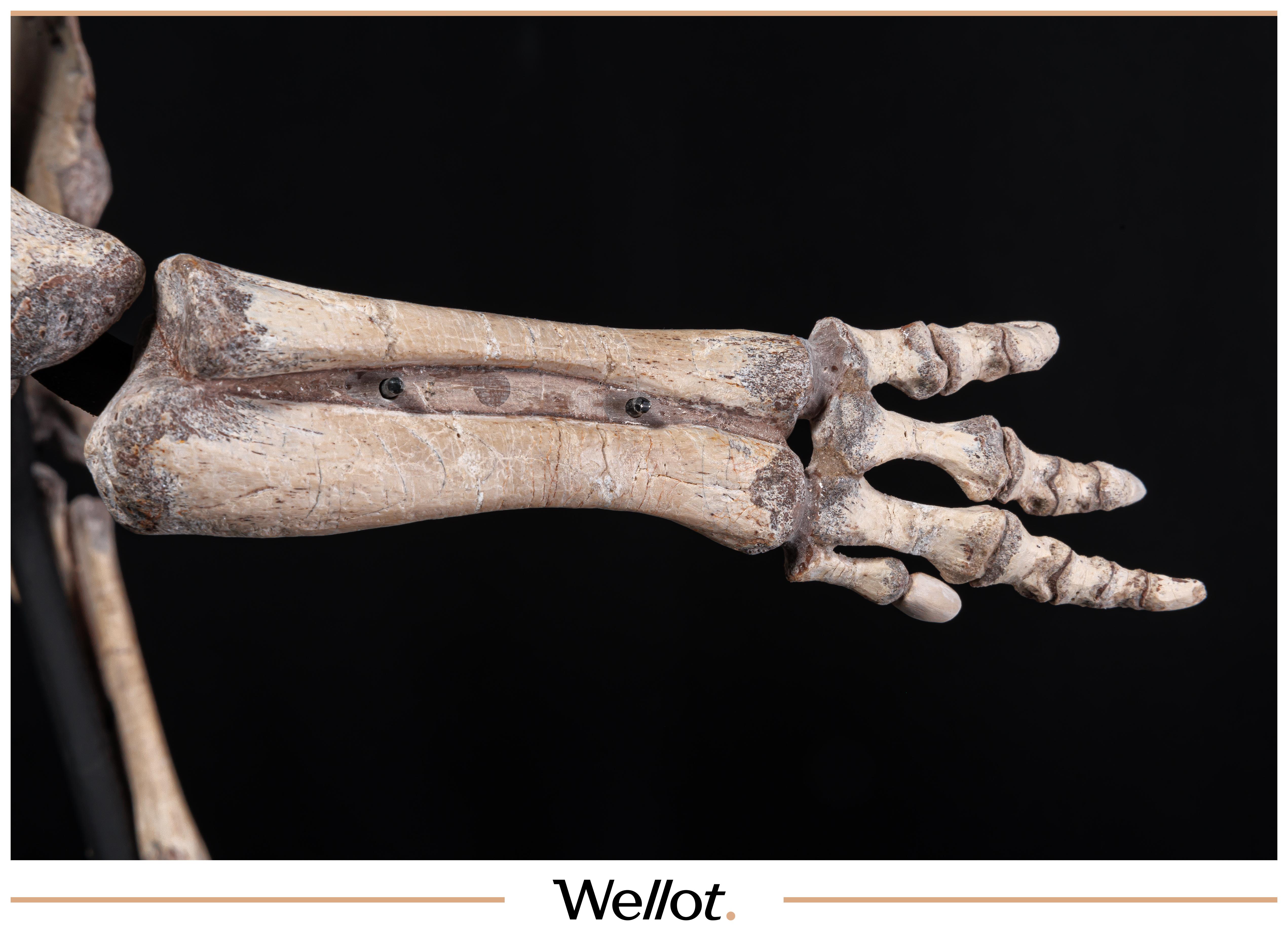 Представленный скелет — музейного уровня экспонат с феноменальной сохранностью и комплектностью костей более 95%. Перед вами самый крупный скелет данного вида из когда-либо доступных к покупке на территории Европы и СНГ: впечатляющие 167 см от клюва до кончика хвоста. Подобное предложение выходит на российский рынок впервые — редкий шанс приобрести объект, который обычно доступен лишь институциям.